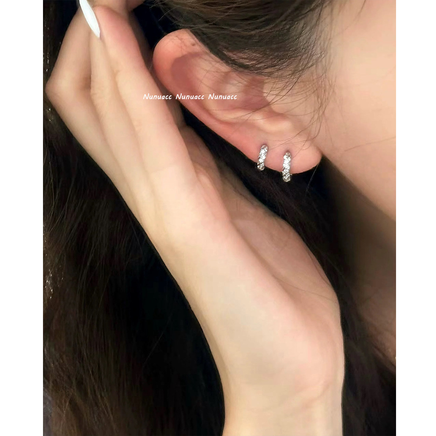 📚 NUNU睡觉免摘锆石麻花耳圈耳骨环mini日系边缘耳皮钉耳骨钉小耳扣