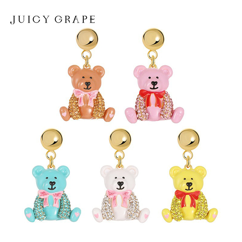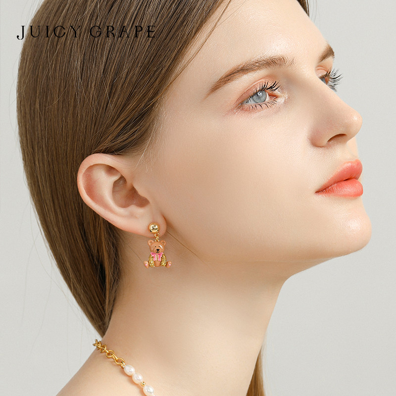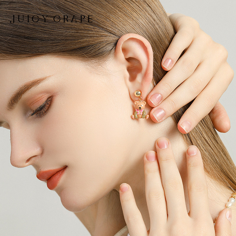 📚 Juicy Grape立体可爱小熊耳环珐琅耳夹原创设计耳钉女友闺蜜礼物