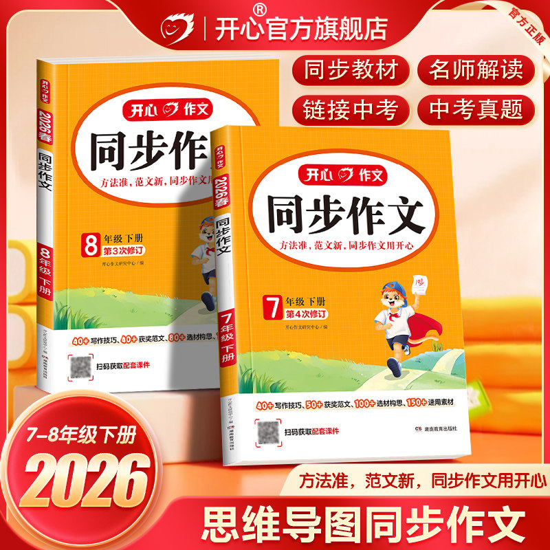📚 2026春开心同步作文阅读理解专项训练书七八九年级上下册人教版初中生初一二三语文同步阅读答题模板素材大全满分范文书技巧中考