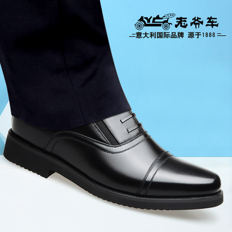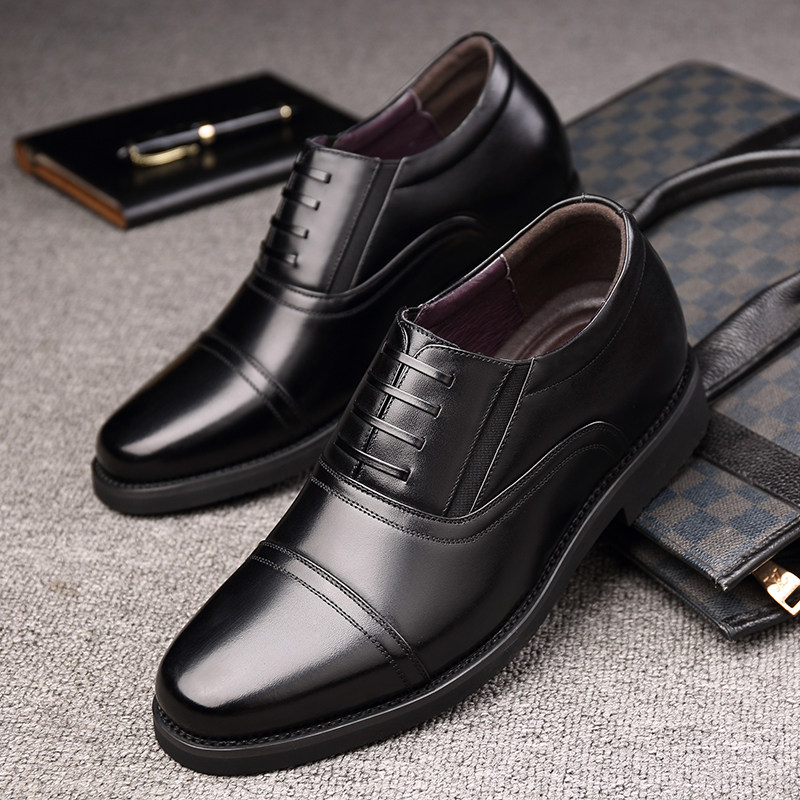 📚 三接头皮鞋男真皮透气内增高消防员保安公务员通勤配制服鞋子男鞋