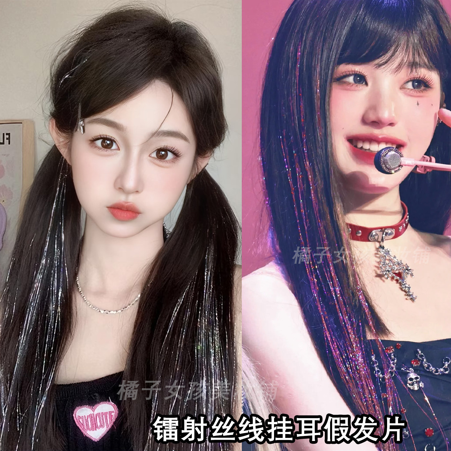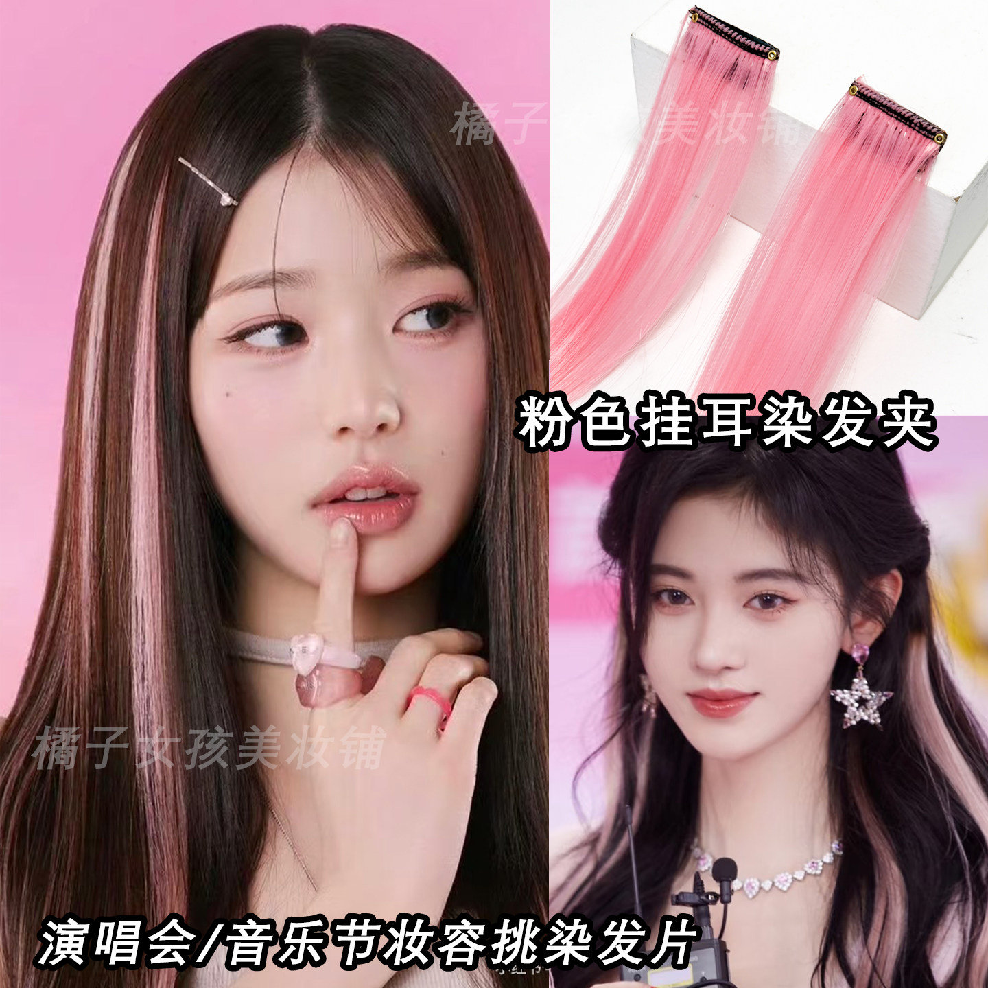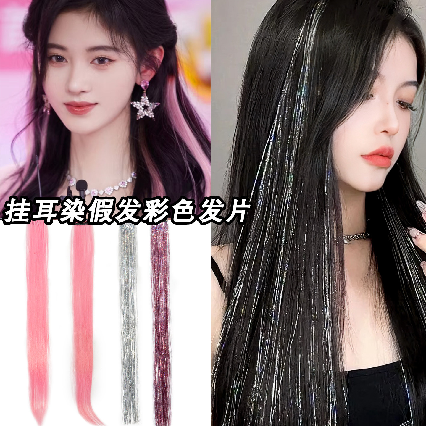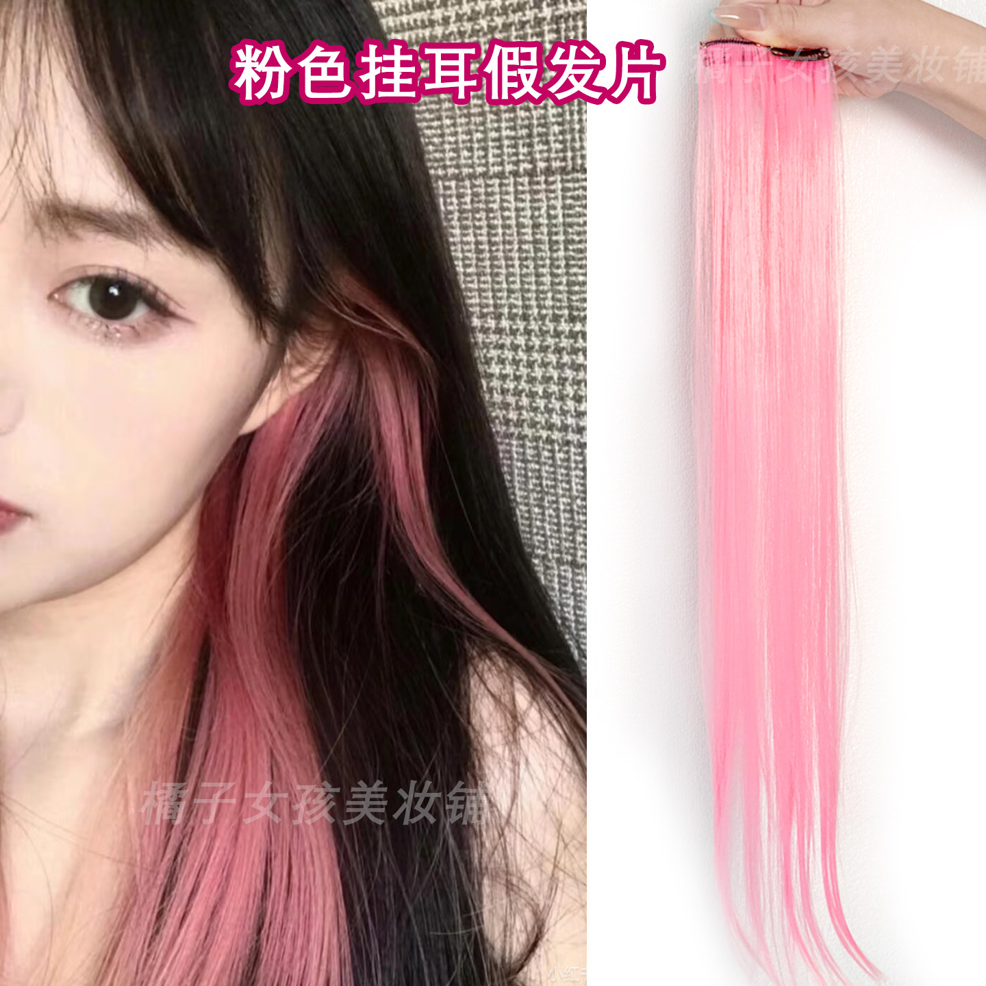 📚 彩色挂耳染发片应援妆音乐节发饰粉色渐变挑染长直发自然隐形发条