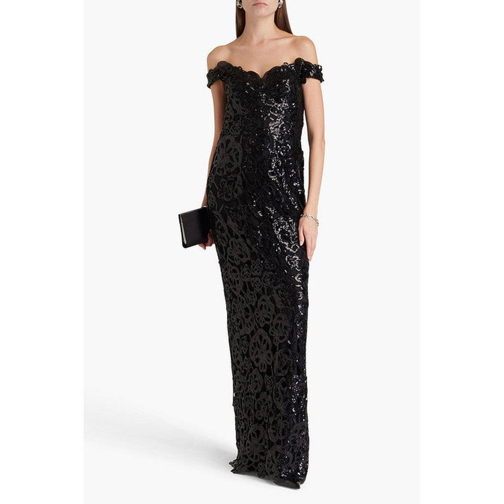 📚 付款1h内可退 香港直邮MARCHESA NOTTE 女士 露肩珠片凸纹花边蕾