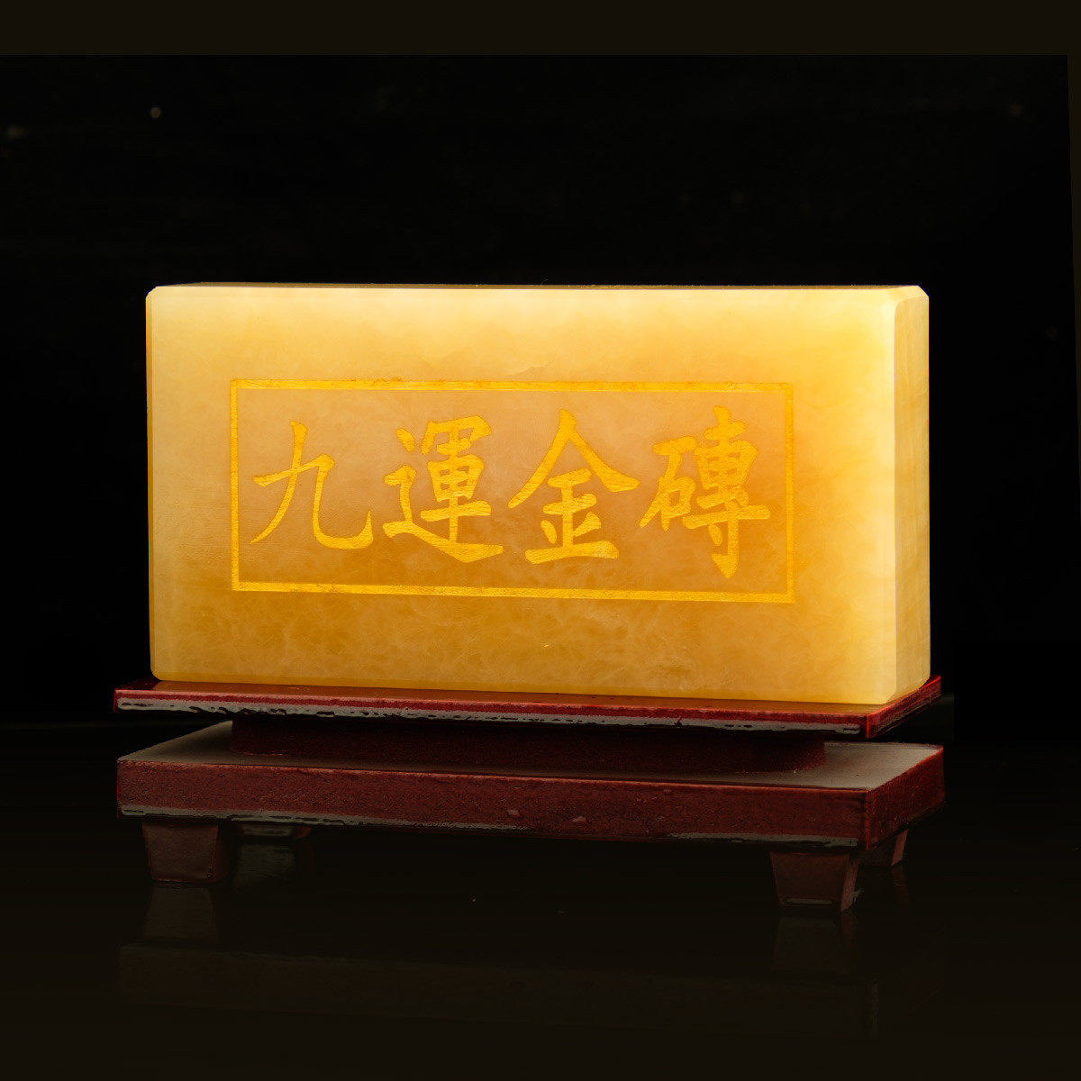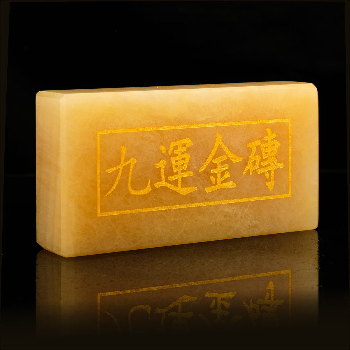 📚 天然黄玉石三块八运金砖九运金砖摆件客厅办公室玉石雕刻家居装饰