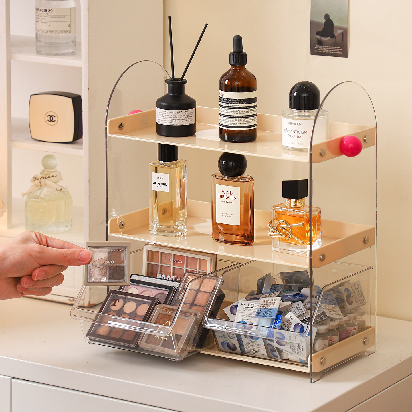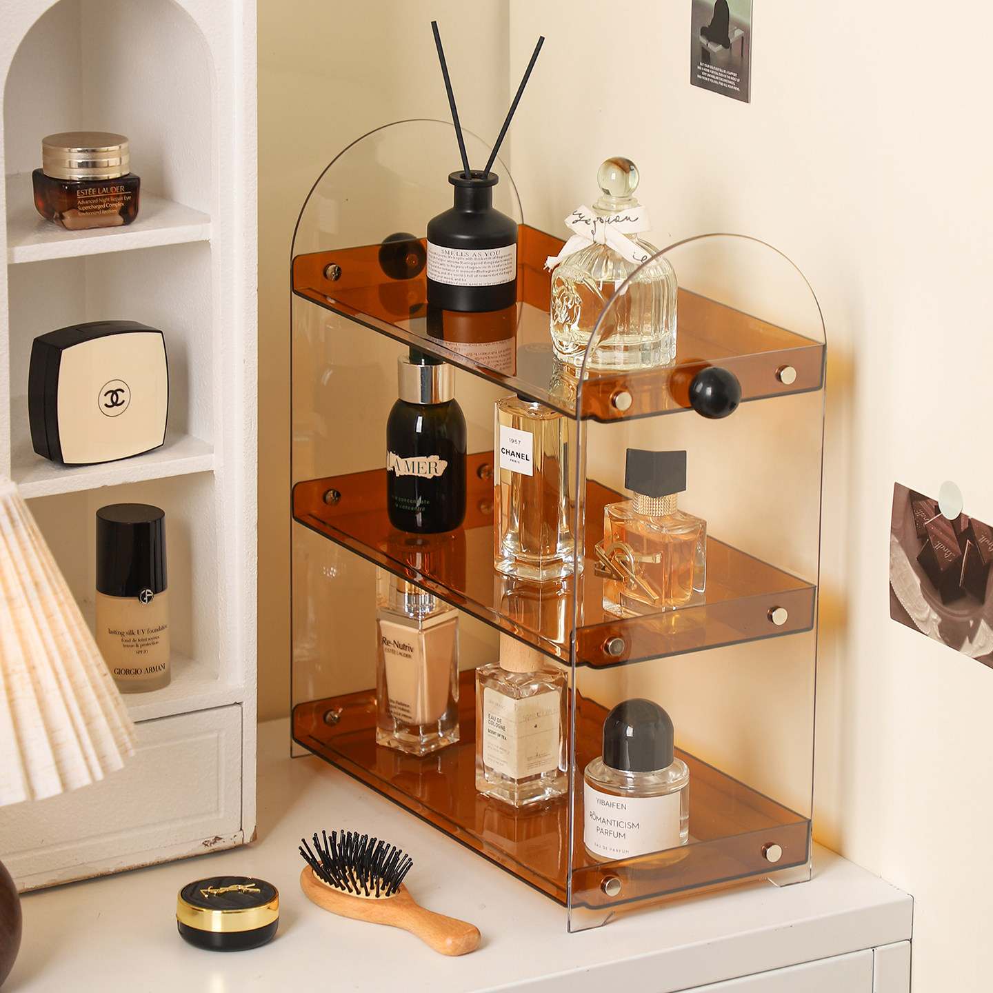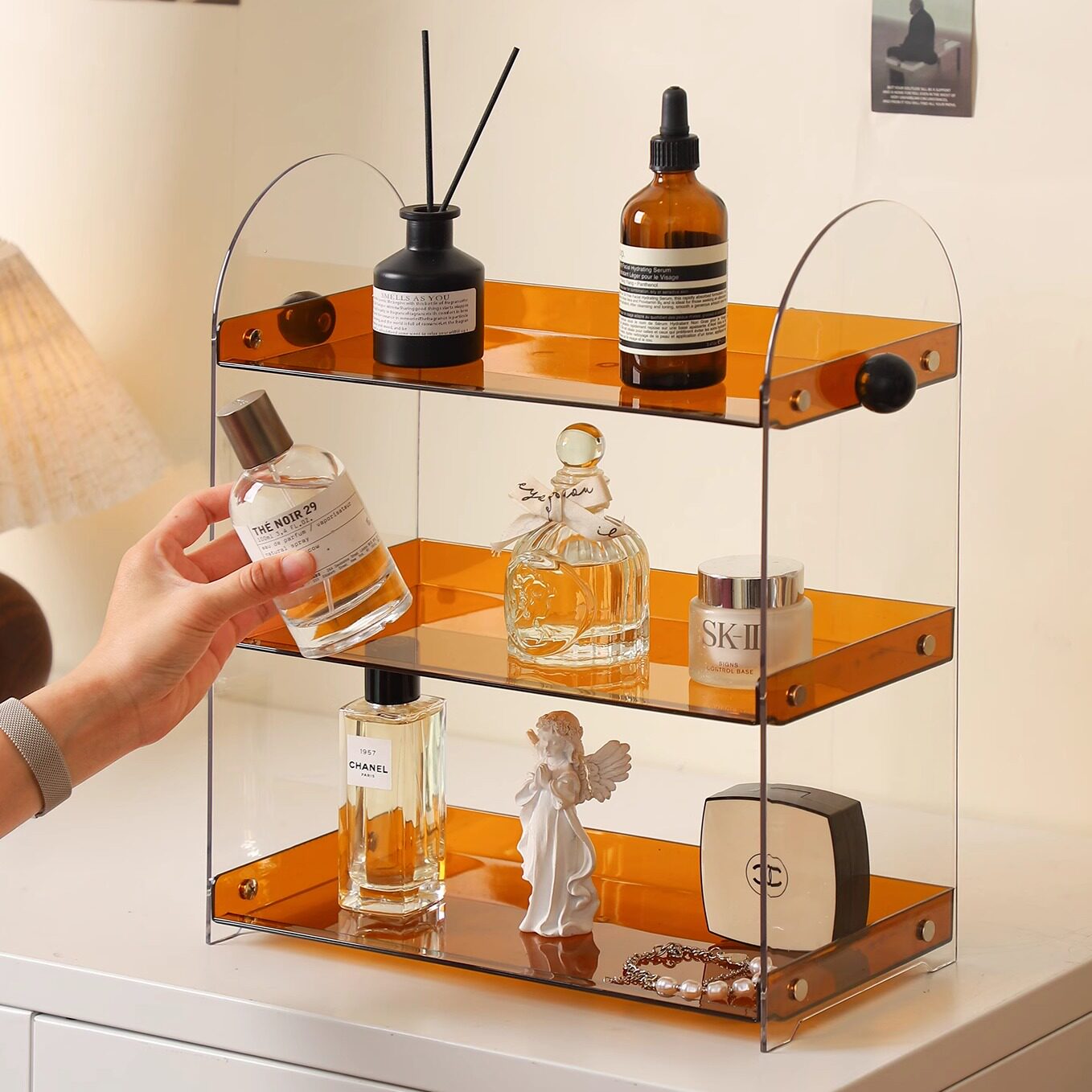 📚 化妆品置物架梳妆台香水护肤品收纳盒桌面亚克力多层加高展示架子