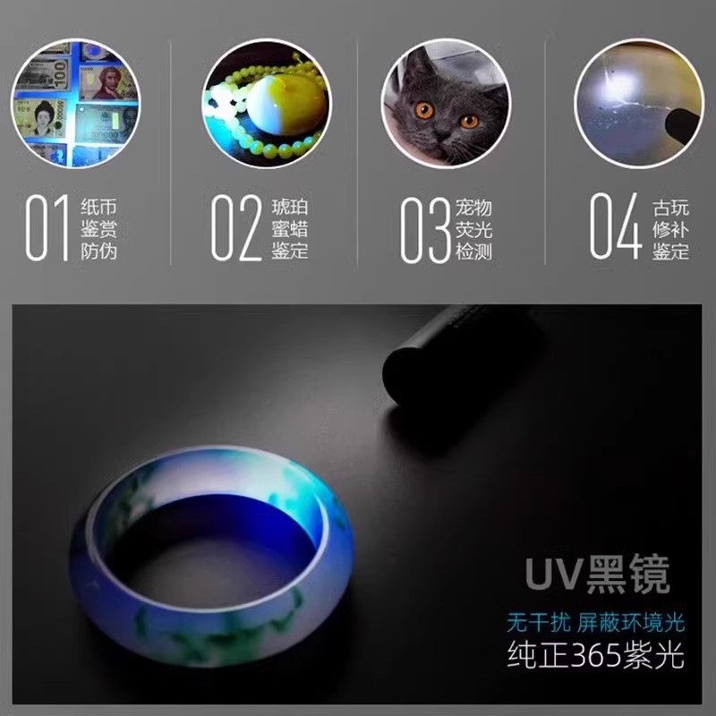 📚 紫光灯荧光剂检测灯鉴定专用烟酒验钞灯珠宝玉石紫外线蓝光手电筒