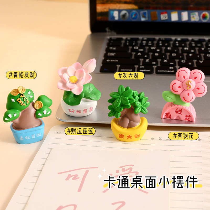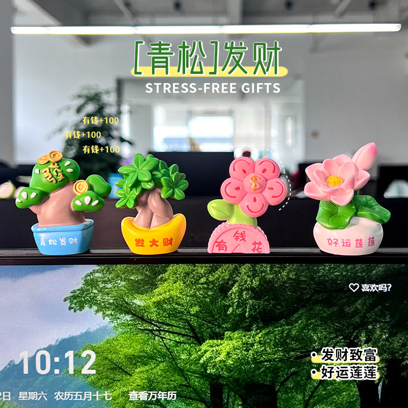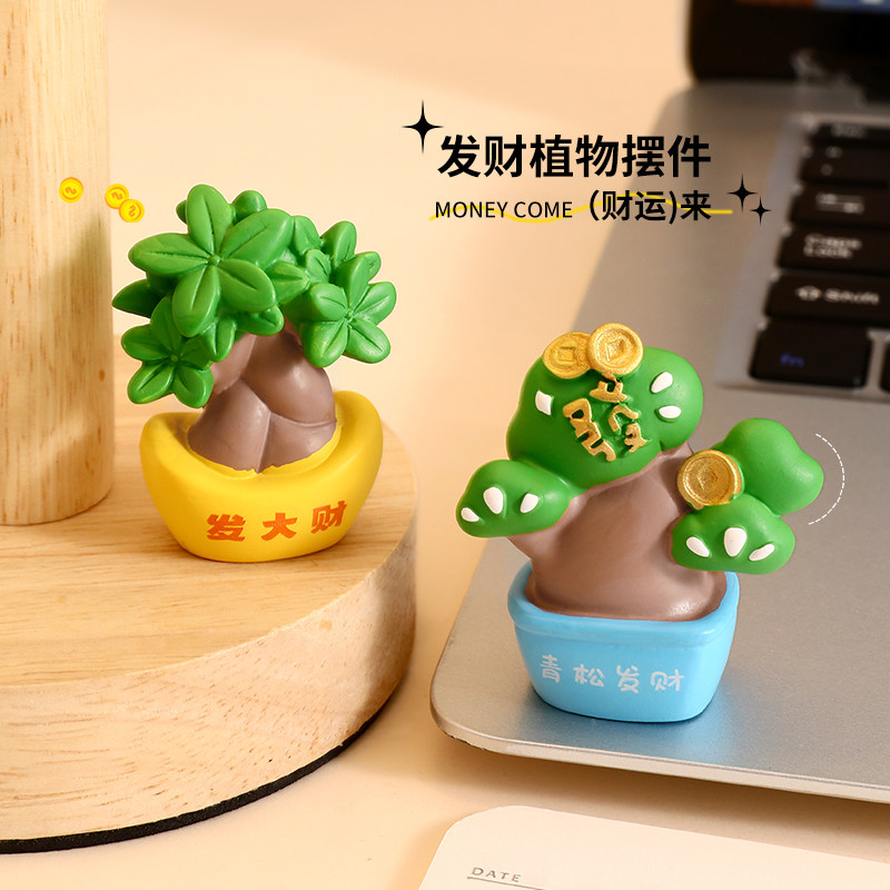 📚 青松发财植物小摆件办公室工位电脑桌面装饰治愈招财伴手礼小礼物