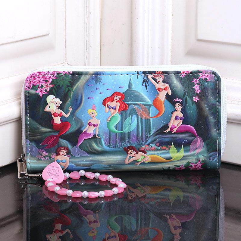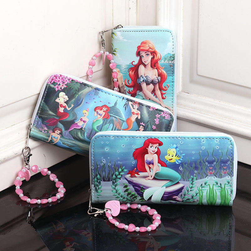 📚 ins卡通可爱美人鱼多卡位多隔层时尚拉链长款手包女童女士钱包