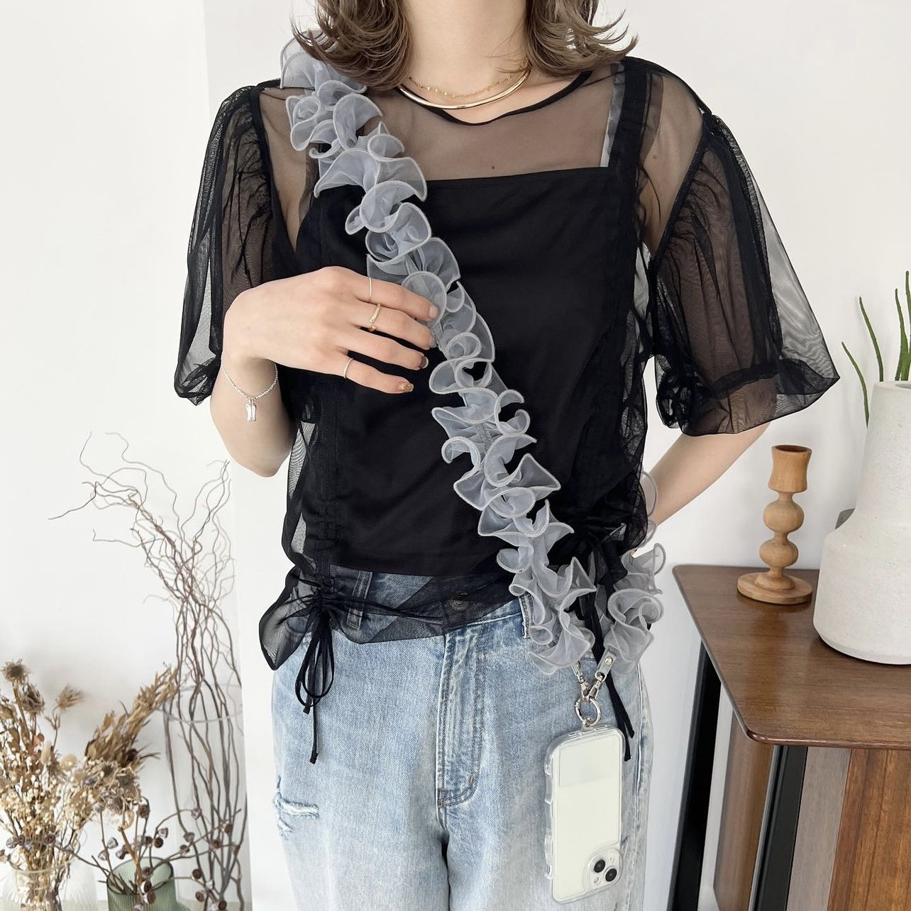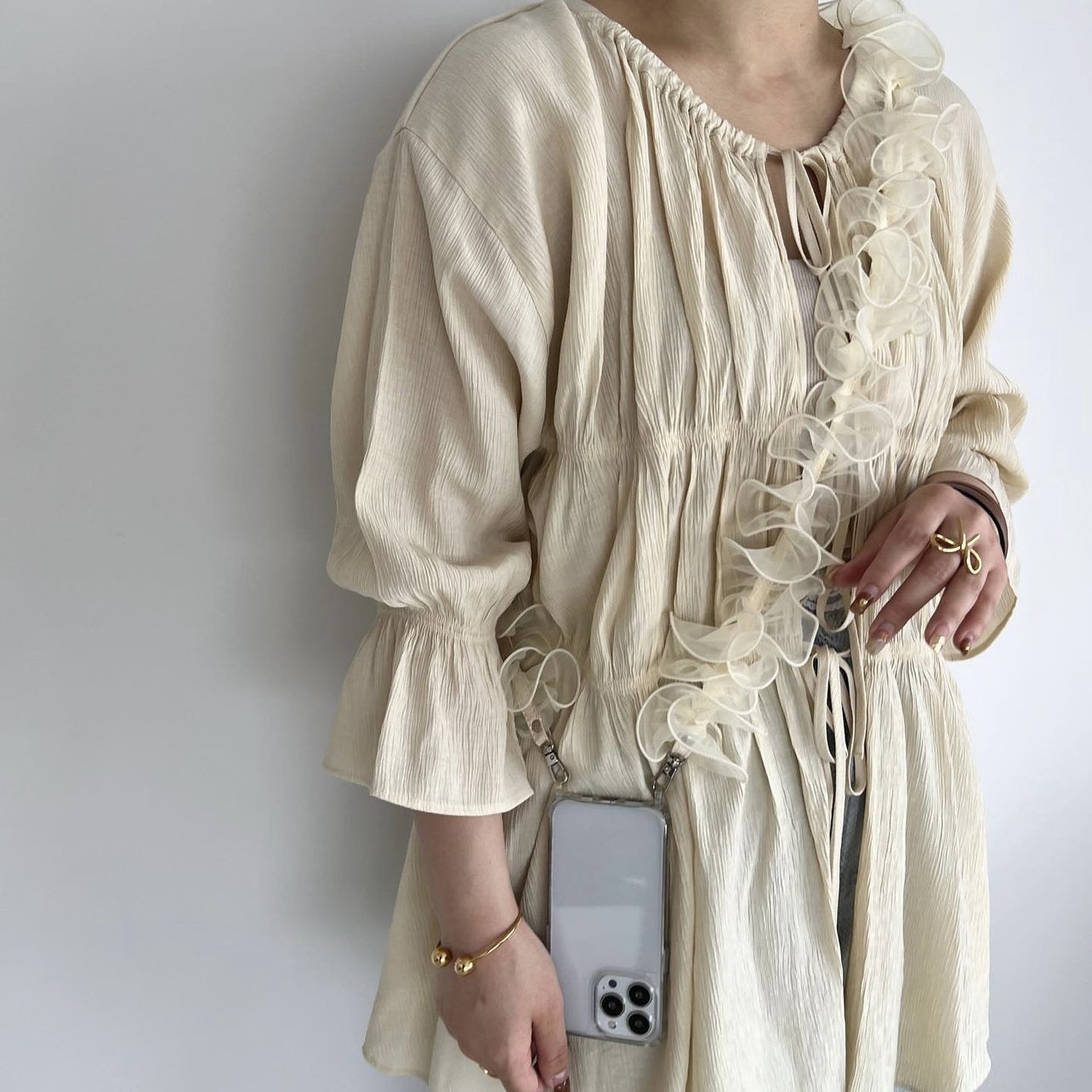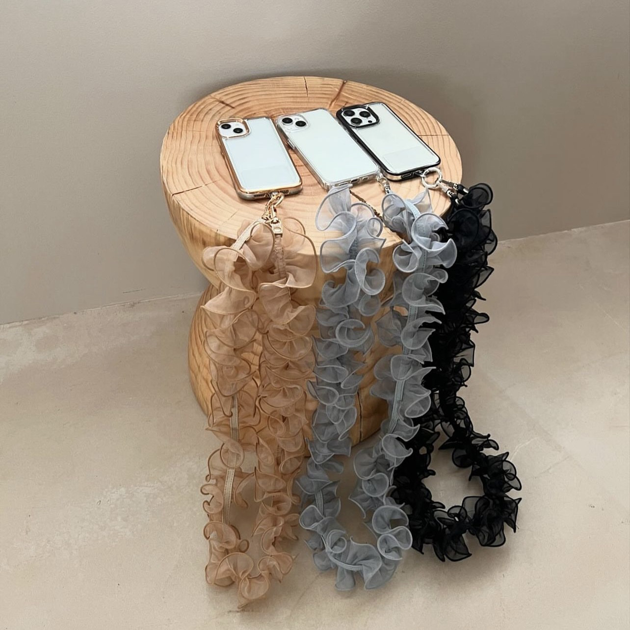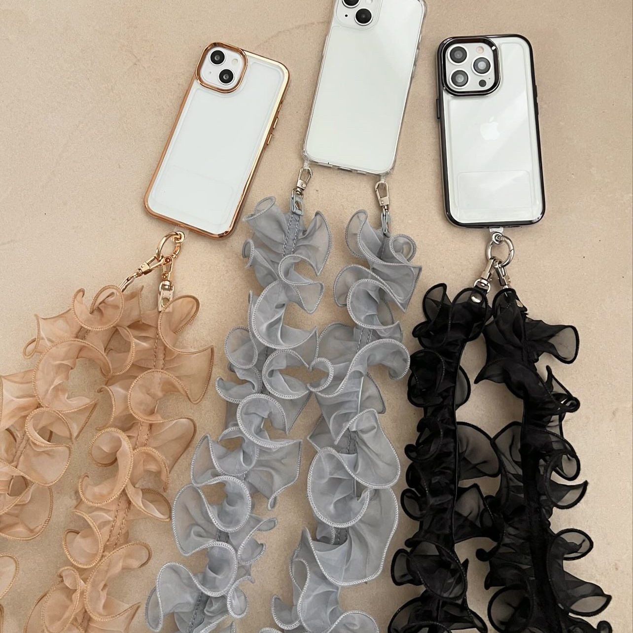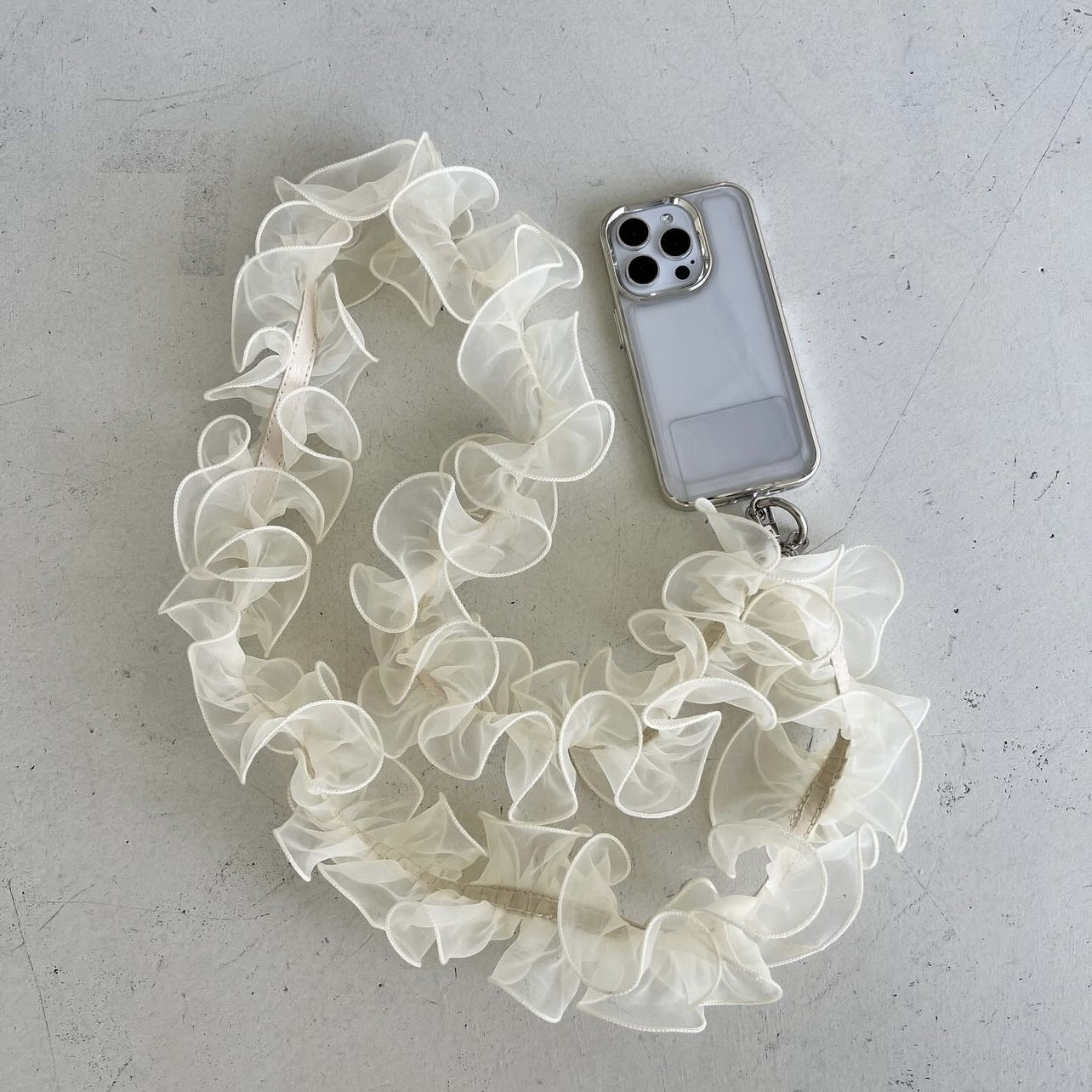 📚 日韩系小众木耳褶边细纱仙美百搭手机斜挎链肩带Me同款