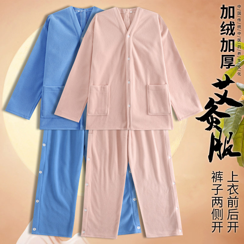 📚 冬季艾灸服加绒加厚前后开衫男女开背按摩针灸拔罐刮痧中医理疗服