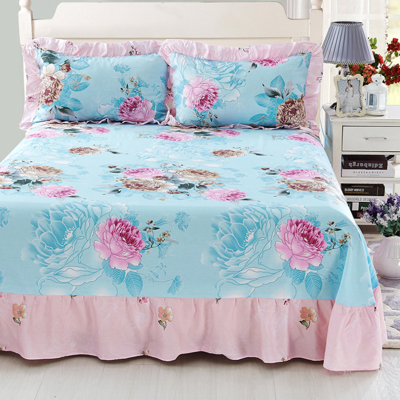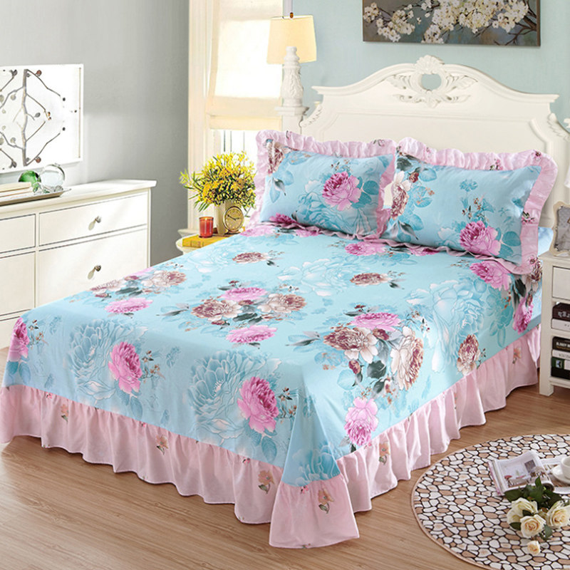 📚 纯棉床单单件100全棉夏季双人一米五家用女士带花边夏天碎花被单