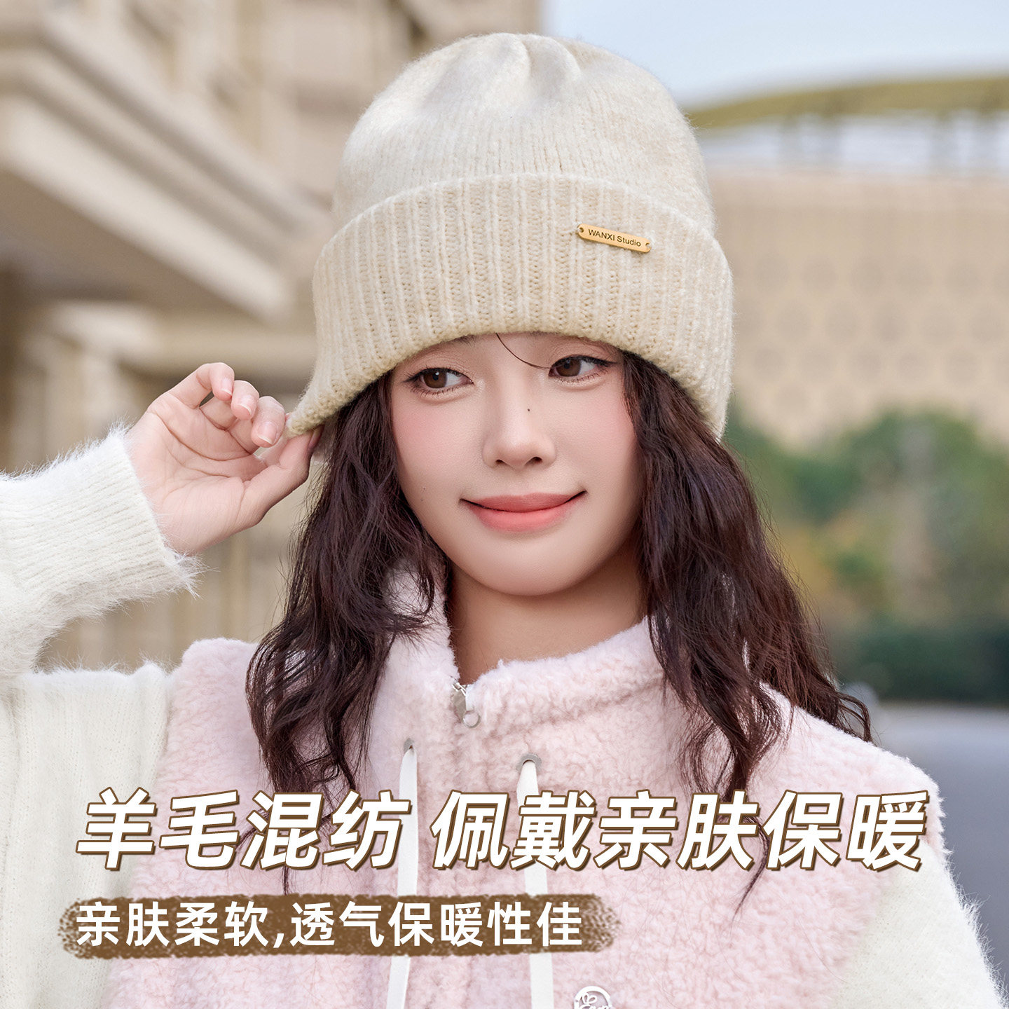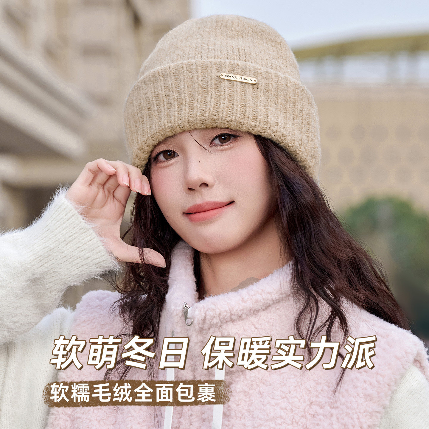 📚 显脸小帽子女秋冬季高级感保暖大头围加绒护耳洋气时髦毛线帽冷帽
