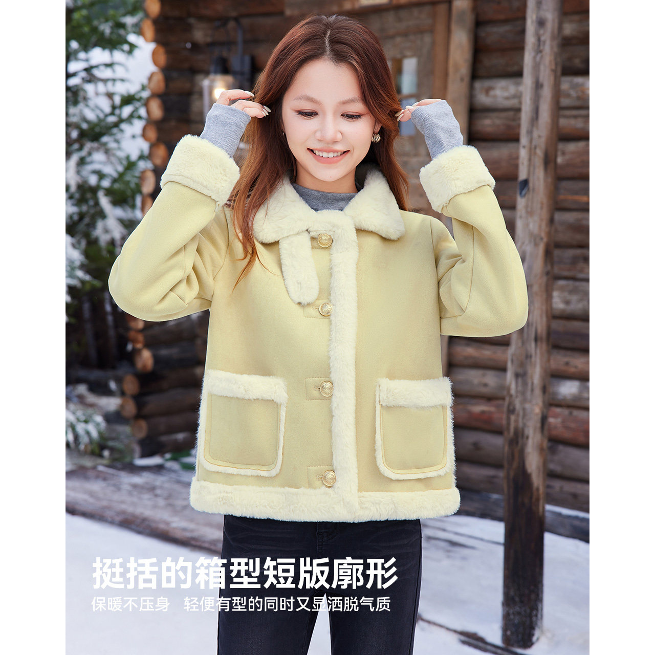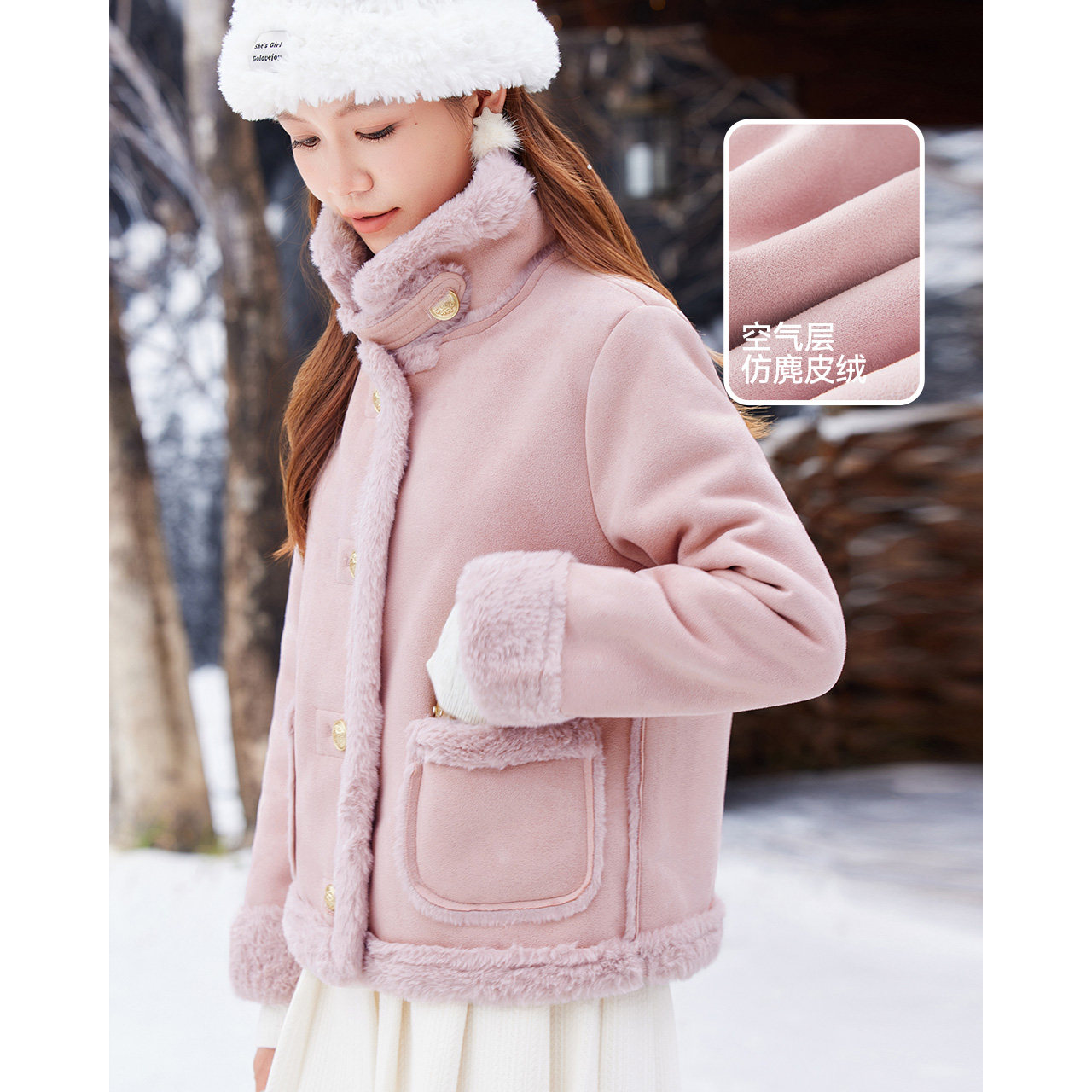 📚 IEF/爱依服2025年冬仿麂皮绒皮毛一体外套女羊羔毛加厚小个子短款