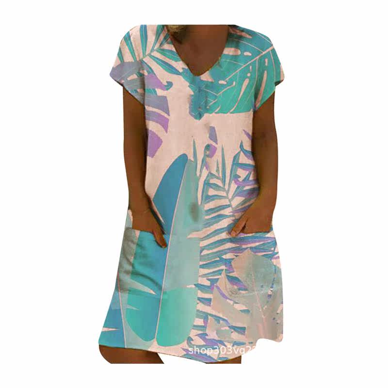 📚 2021 Digal Printed Short Sleeve Midi Dresses Fall Summer v-N