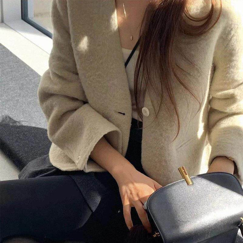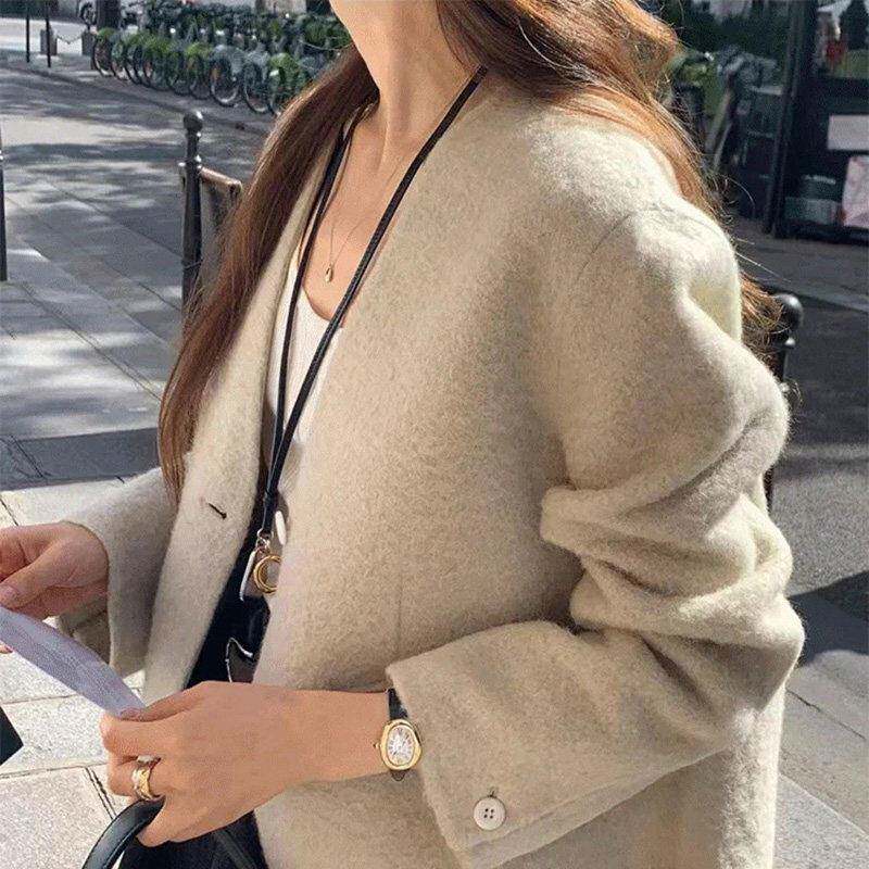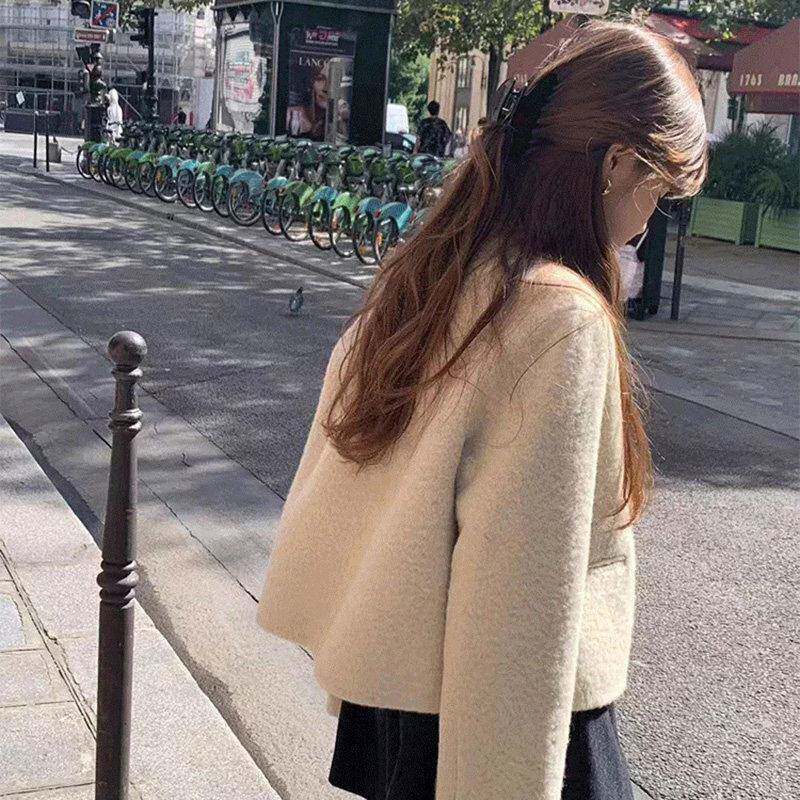 📚 【现货】韩国OUNCE休闲简约气质短款纯色短款羊毛毛呢宽松外套女