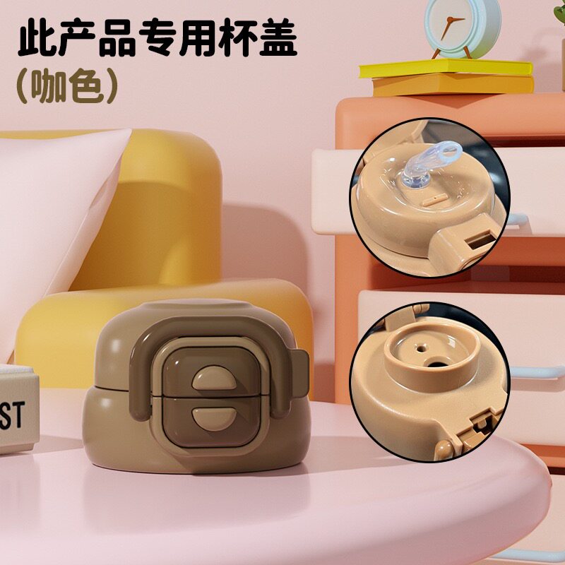 📚 HBL卡通儿童保温杯双饮弹跳盖子双饮杯盖吸嘴吸管带提手防漏