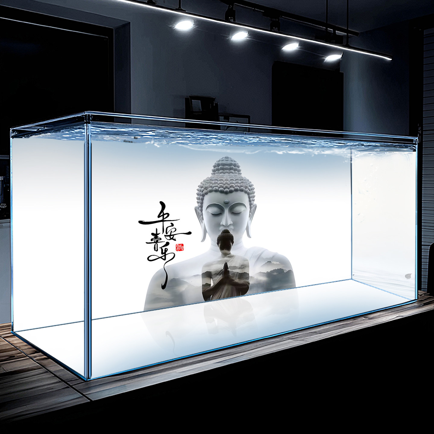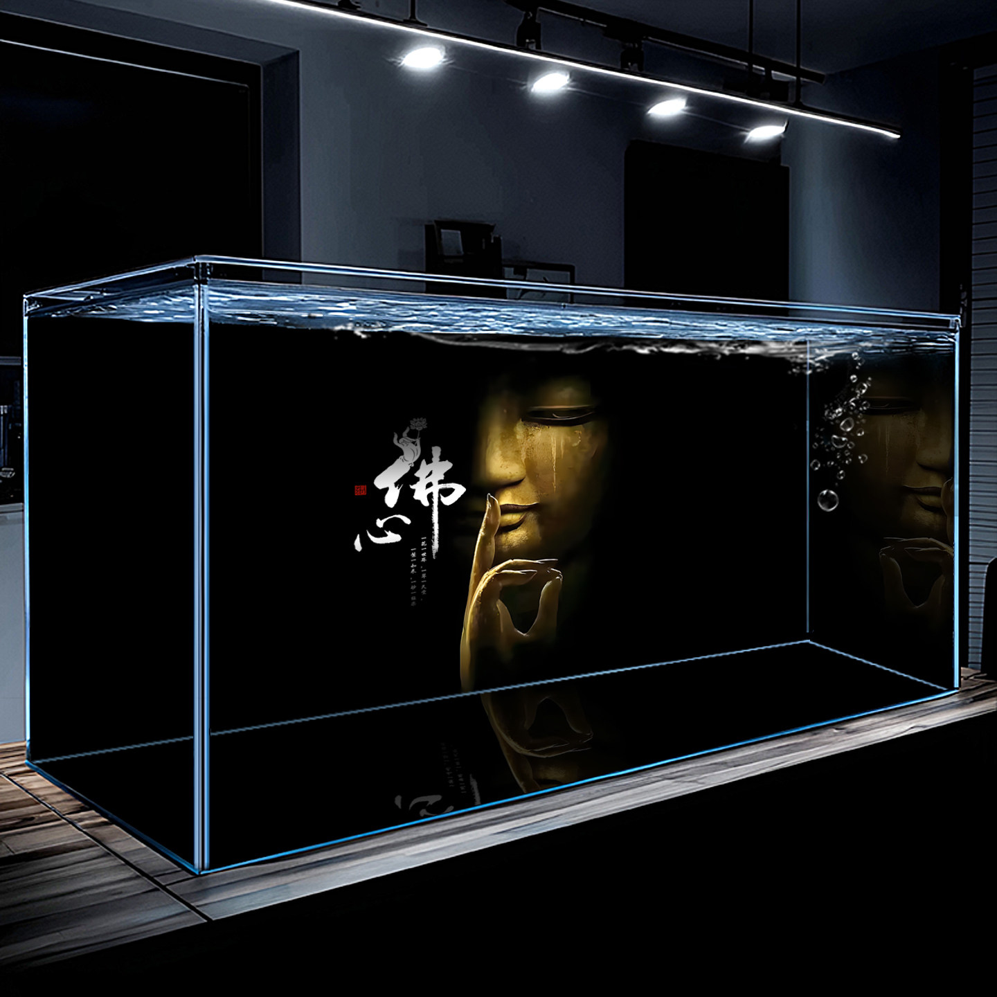 📚 鱼缸背景画高清背景纸贴纸贴画佛图定制龙鱼缸造景装饰画黑色白色