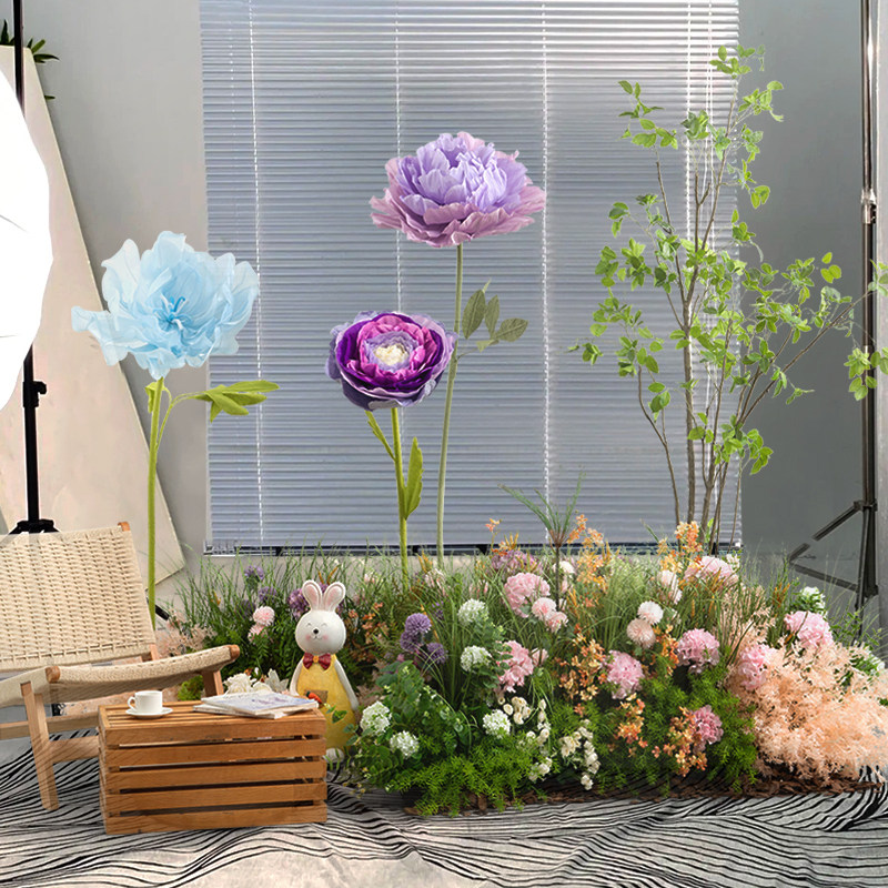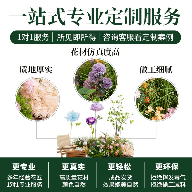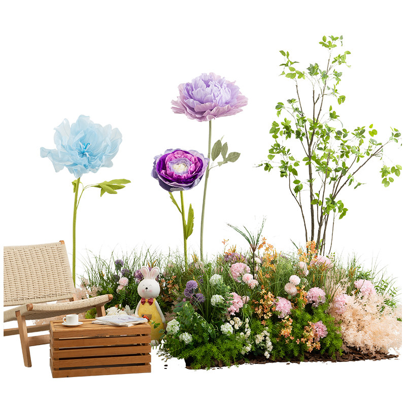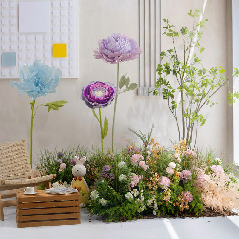 📚 中庭花丛造景装饰异形花槽隔断仿真花艺陈品大型花朵盆栽假树花堆