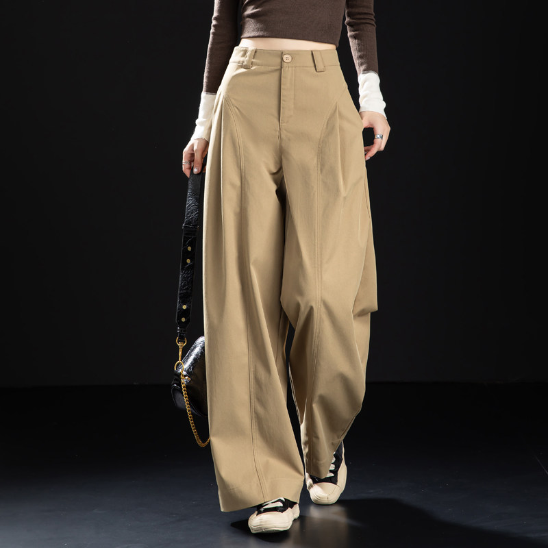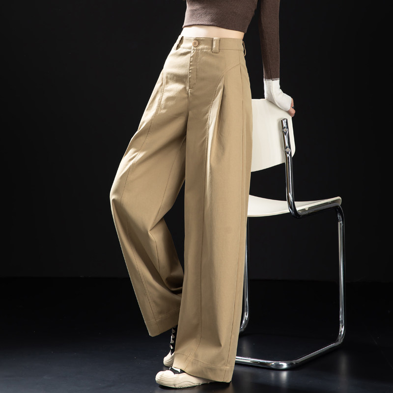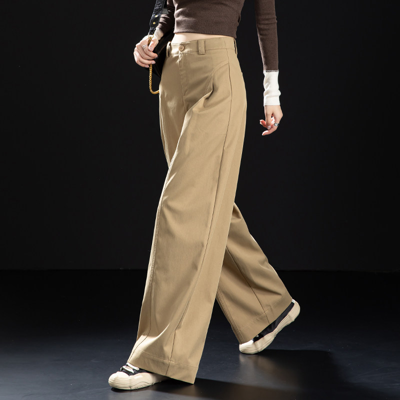 📚 卡其色裤子休闲裤女士2026新款春秋季梨形报恩裤直筒西装裤贝斯裤