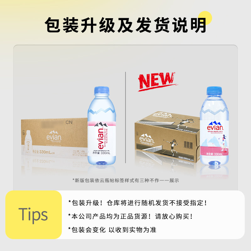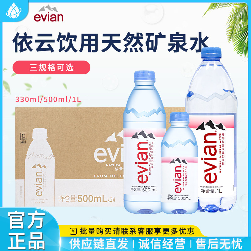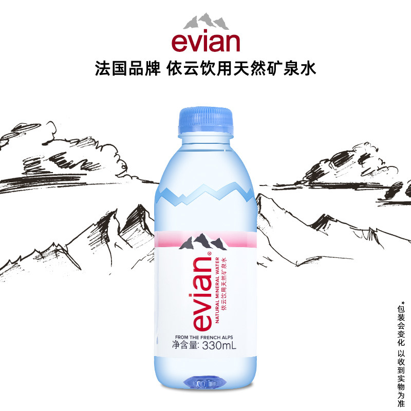 📚 法国evian依云矿泉水330ml/500ml/1L中文版天然弱碱性进口矿泉水