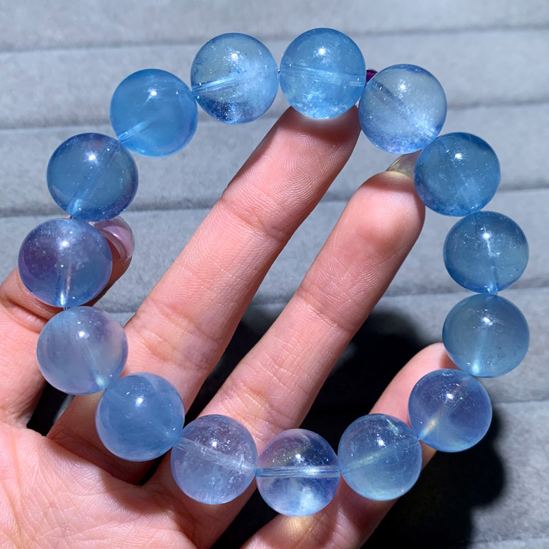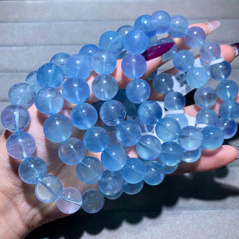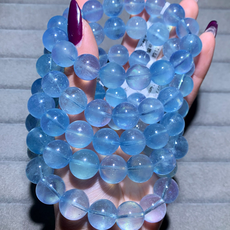 📚 天然星光冰透海蓝宝手链巴西绿柱石水晶手串清新饰品送礼物情侣款