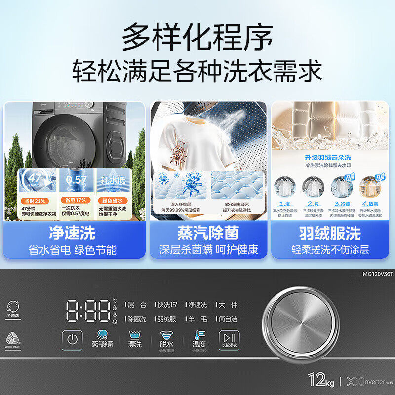 📚 政府补贴美的滚筒洗衣机12kg大容量官方正品洗烘干一体全自动家用