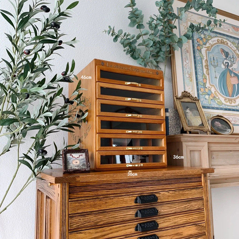 📚 复古收纳柜盒手帐印章胶带抽屉式九格实木柜药杂物柜学生宿舍