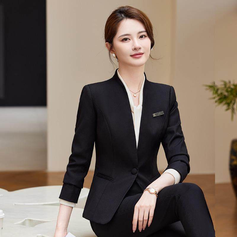 📚 无领西装套装女美容院珠宝店酒店经理领班接待工装工作服职业正装