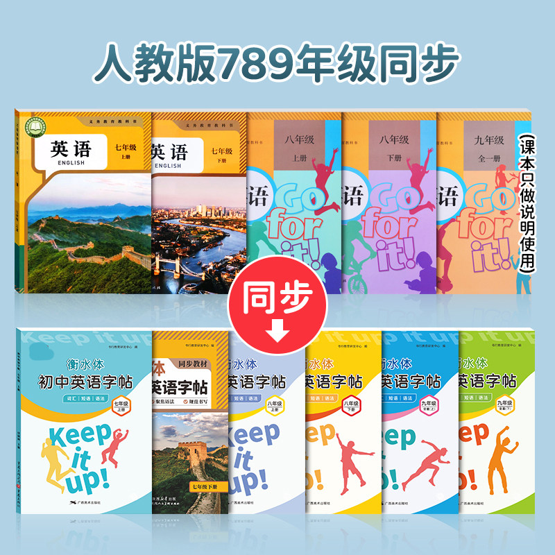 📚 书行七年级上册英语衡水体字帖八九年级人教版同步初中作文练字帖2000词单词初一语文小升初练字本英文练习字体书法页数书写连笔