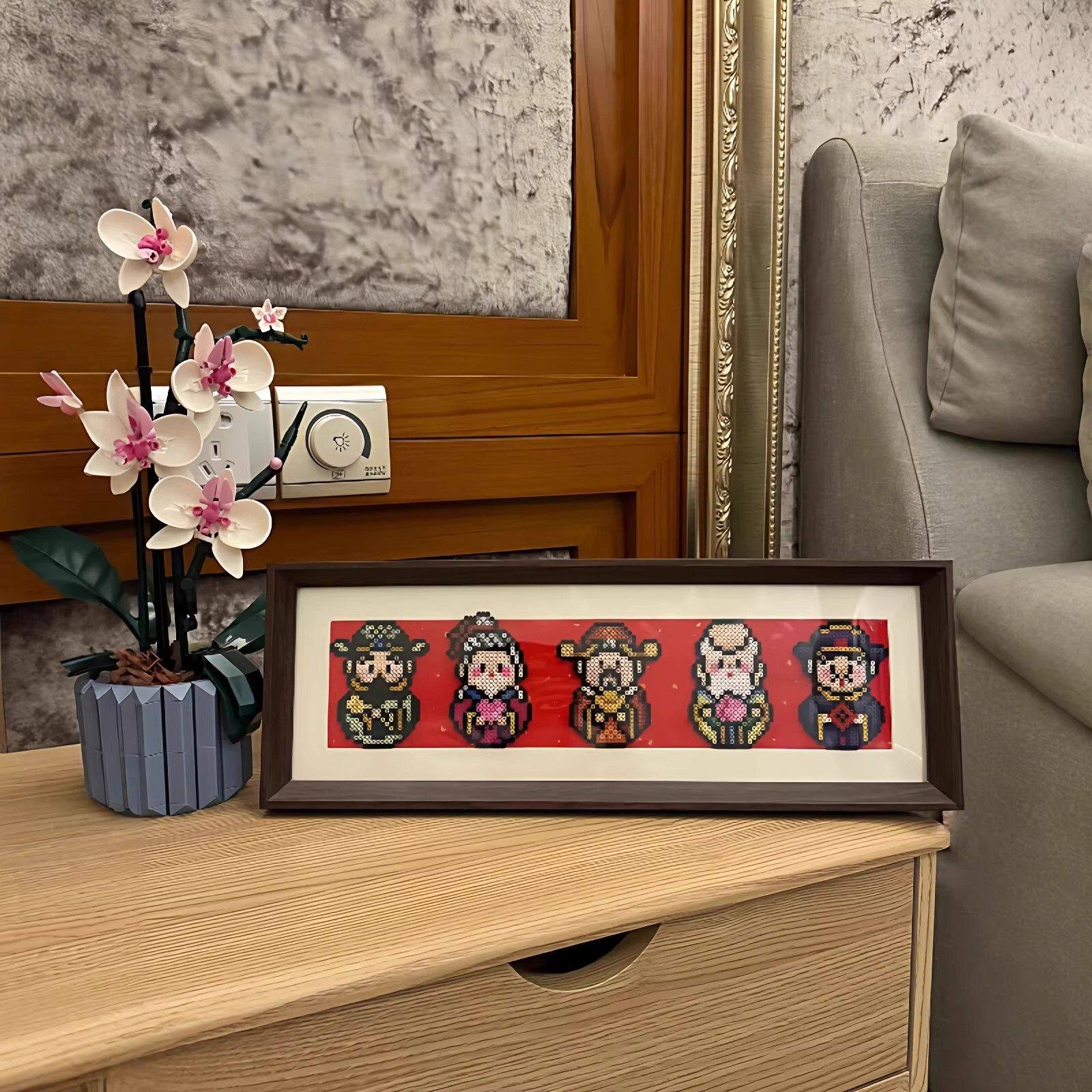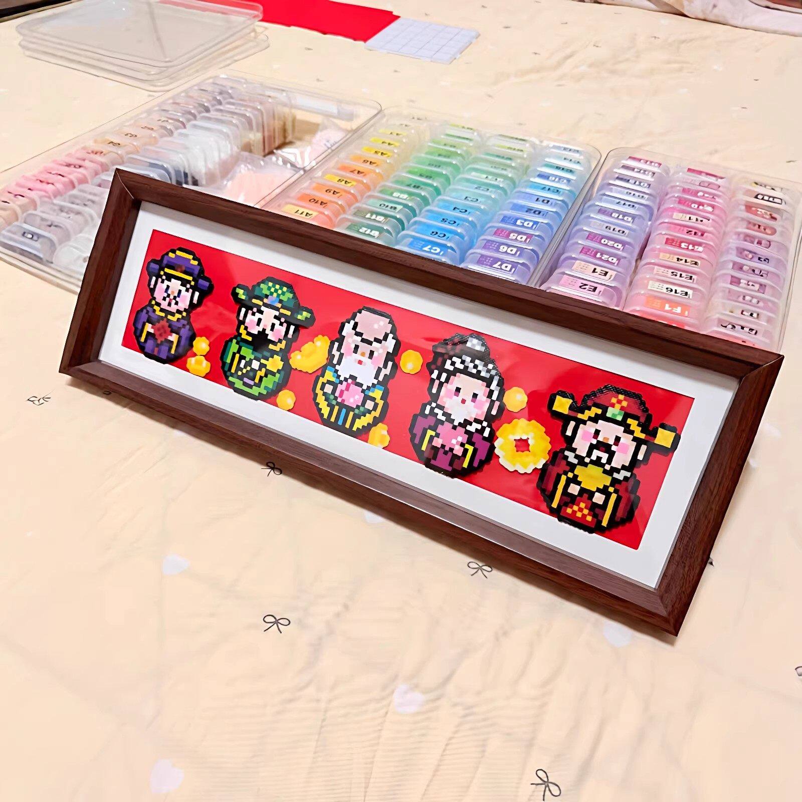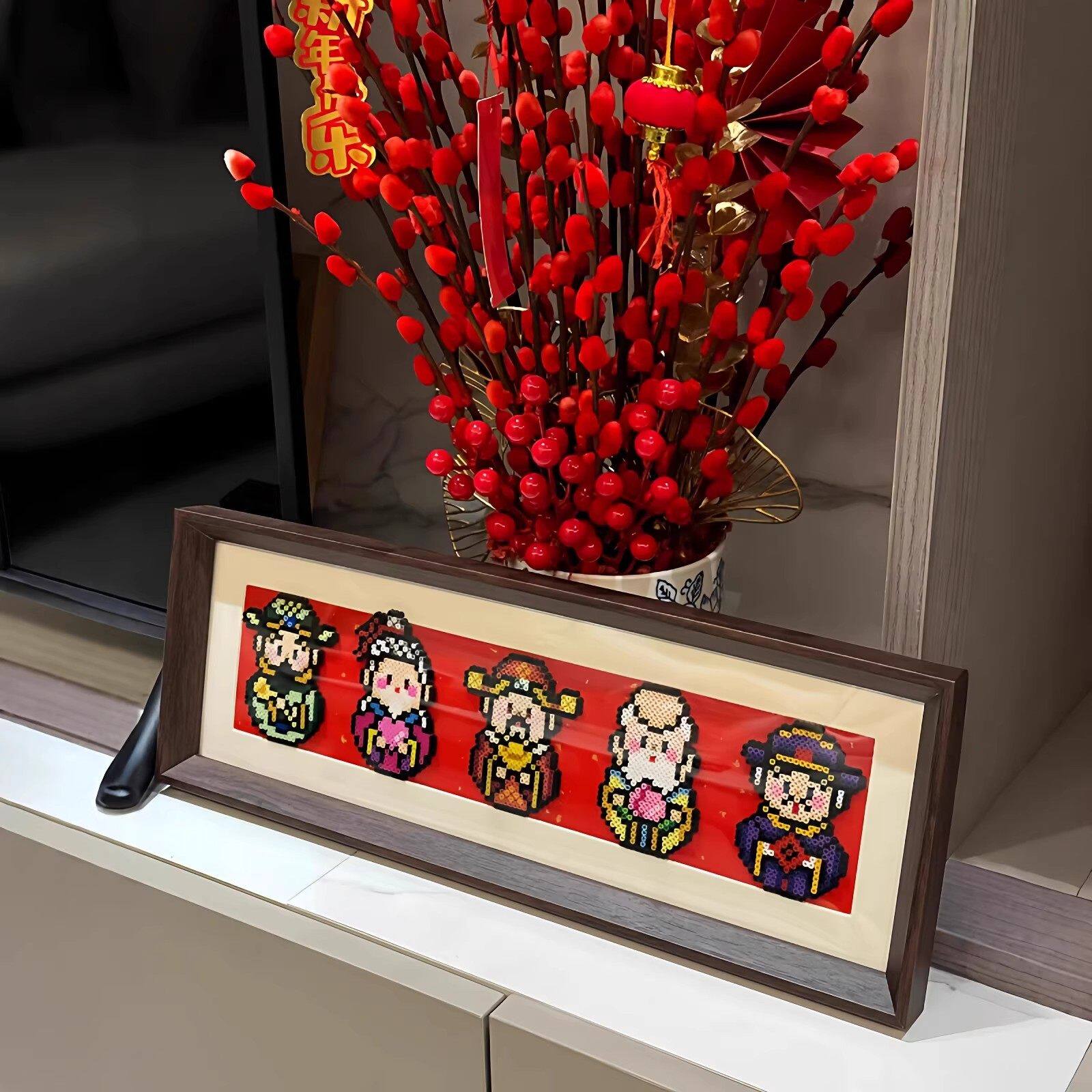 📚 Mriya拼豆五福临门相框空白财神木质展示框摆件福禄寿喜财拼豆框