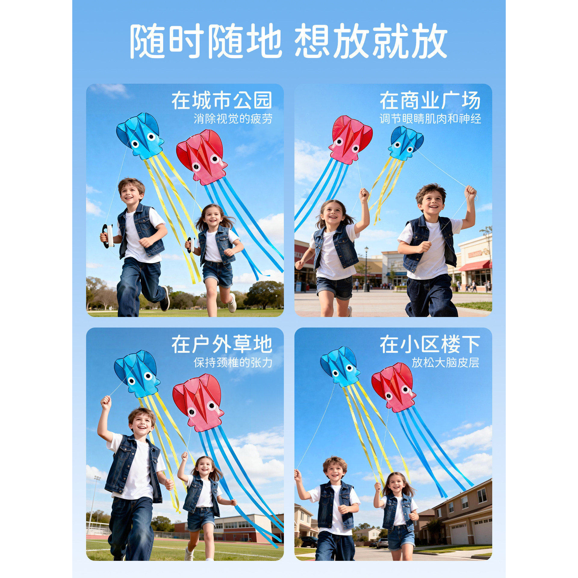 📚 儿童口袋风筝软体小章鱼手持微风易飞便携户外新款可折叠3岁宝宝