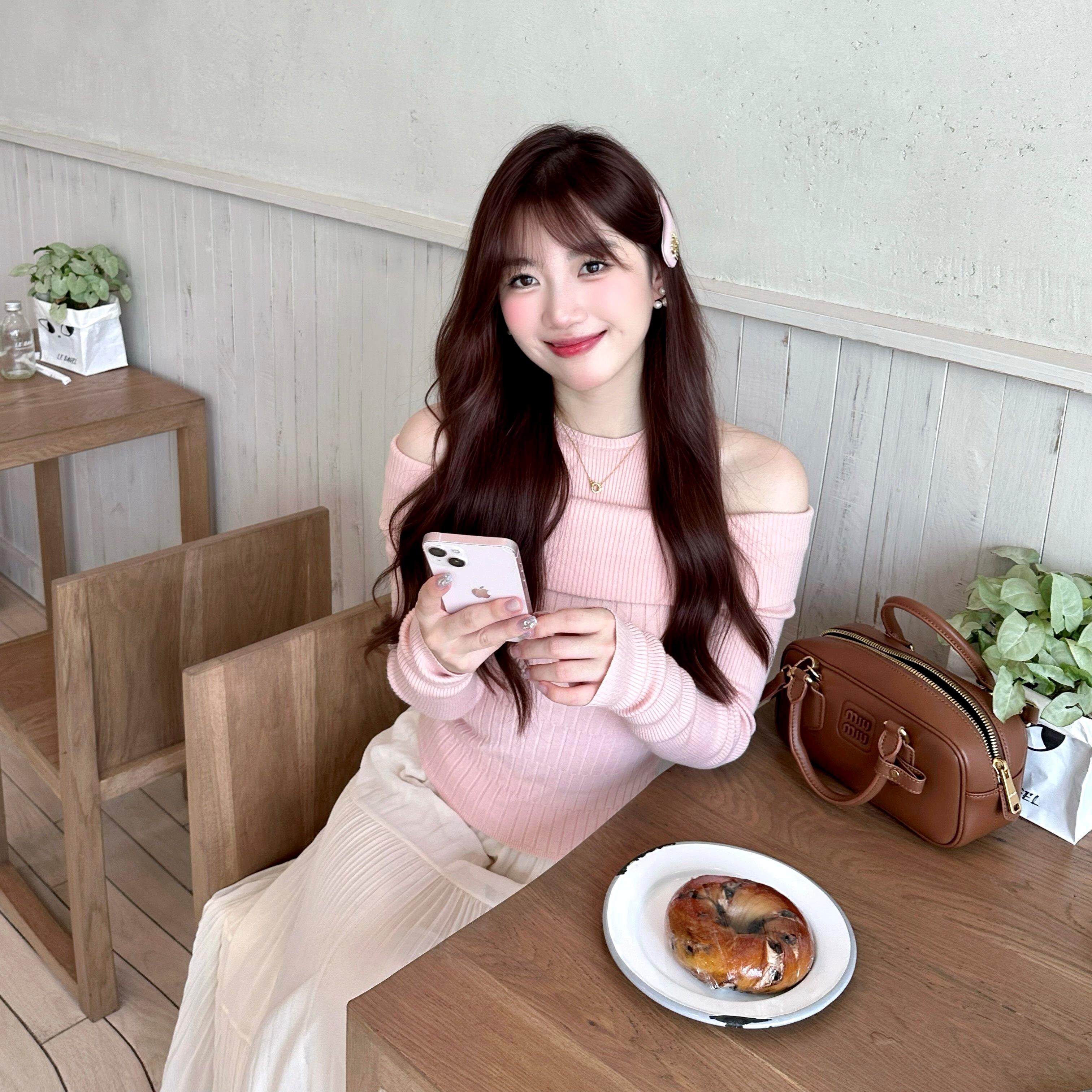 📚 瞌睡树◆干枯玫瑰 露肩秋冬修身显瘦假两件露肩针织衫内搭上衣