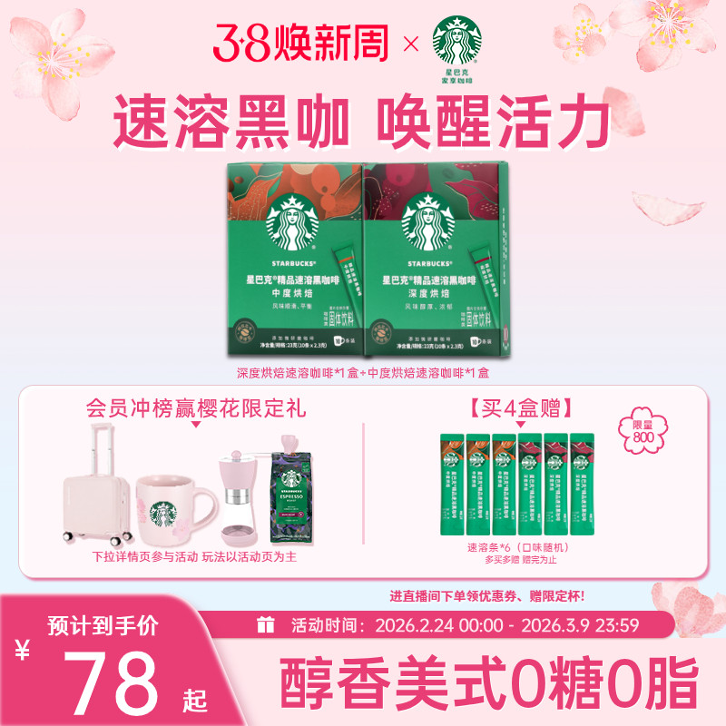 📚 【38焕新周】【2盒】星巴克速溶咖啡粉美式健身伴侣黑咖啡粉