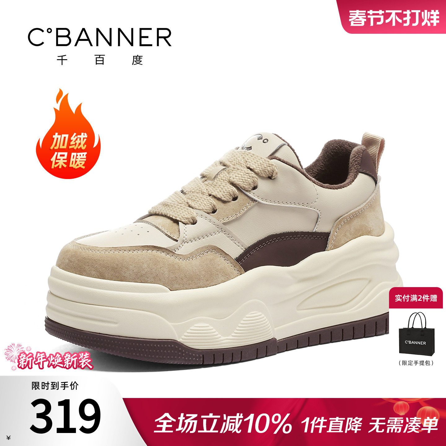 📚 千百度女鞋冬季新款休闲板鞋厚底鞋增高加绒棉鞋运动鞋小白鞋女