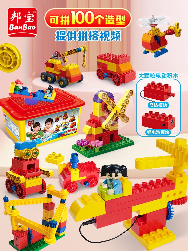 📚 邦宝大颗粒机械齿轮百变积木六一儿童节礼物益智拼插电动玩具6530