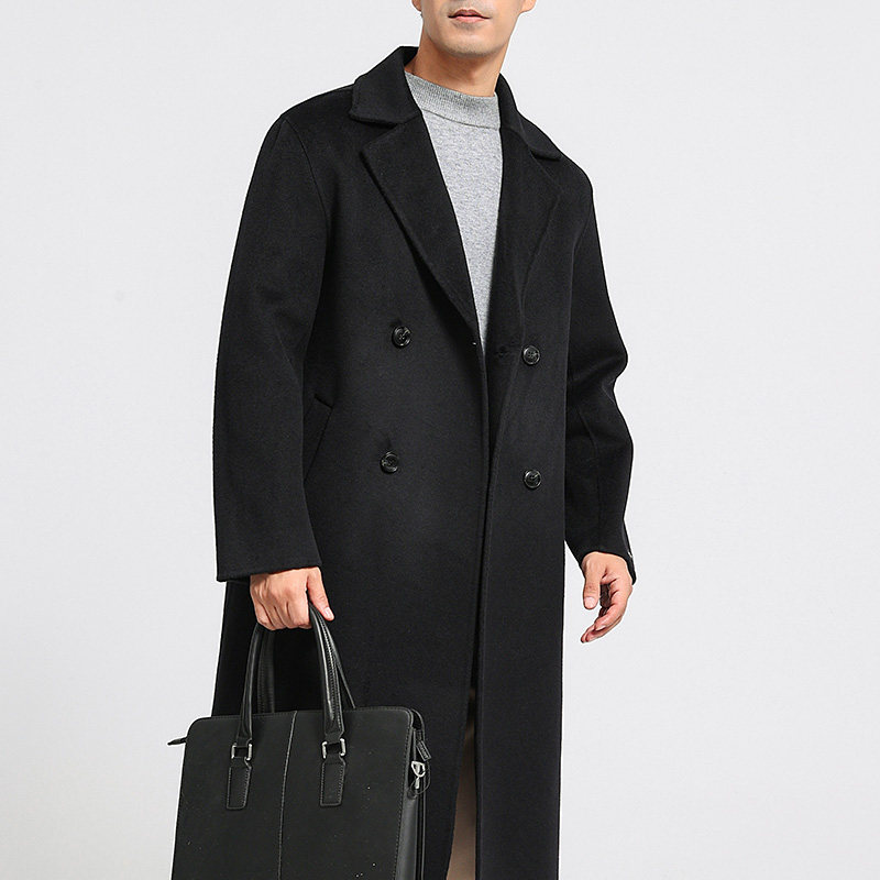 📚 秋冬长款过膝双面绵羊绒大衣男高端韩版西装宽松羊毛呢子风衣外套