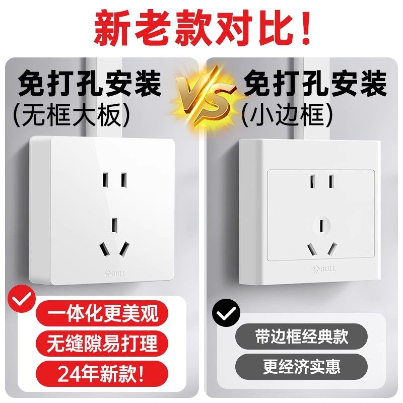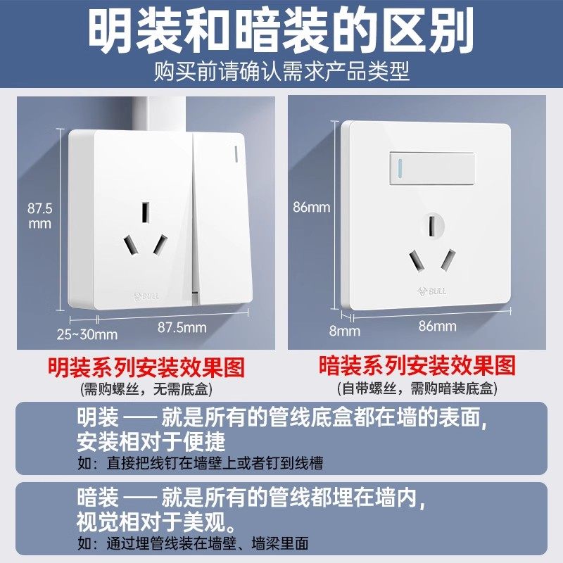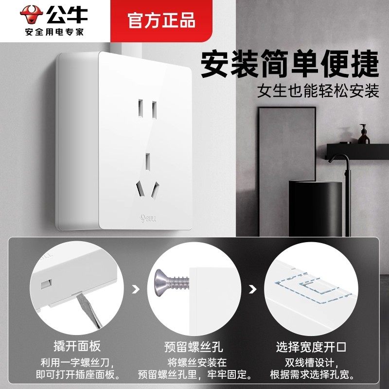 📚 公牛明装开关插座墙壁面板带多孔双控超薄明线盒家用86型五孔白色