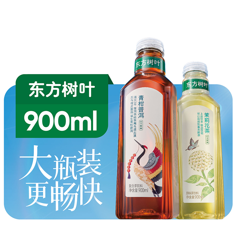 📚 农夫山泉东方树叶青柑普洱茉莉花茶无糖0糖茶饮料900ML大瓶装整箱