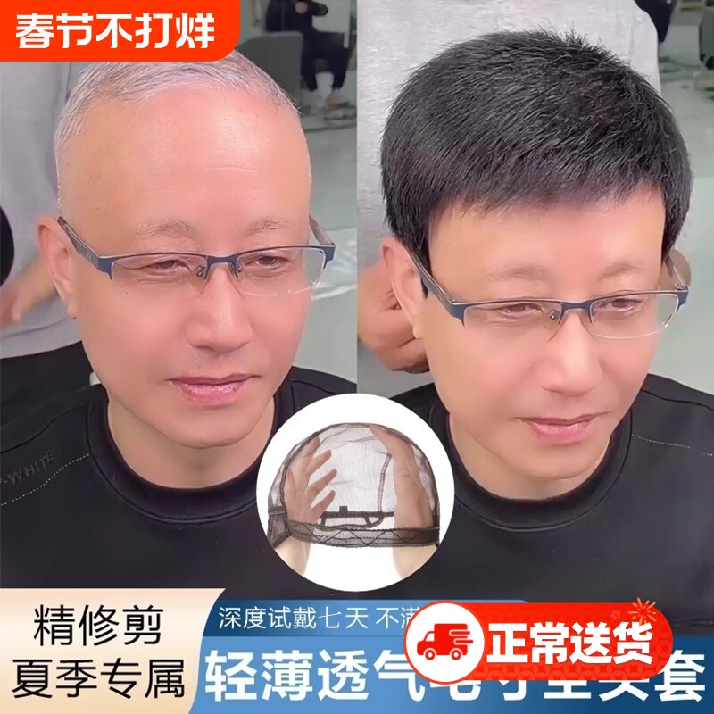 📚 男士假发男款全头套式中老年毛寸短发光头全真发自然透气发丝真人