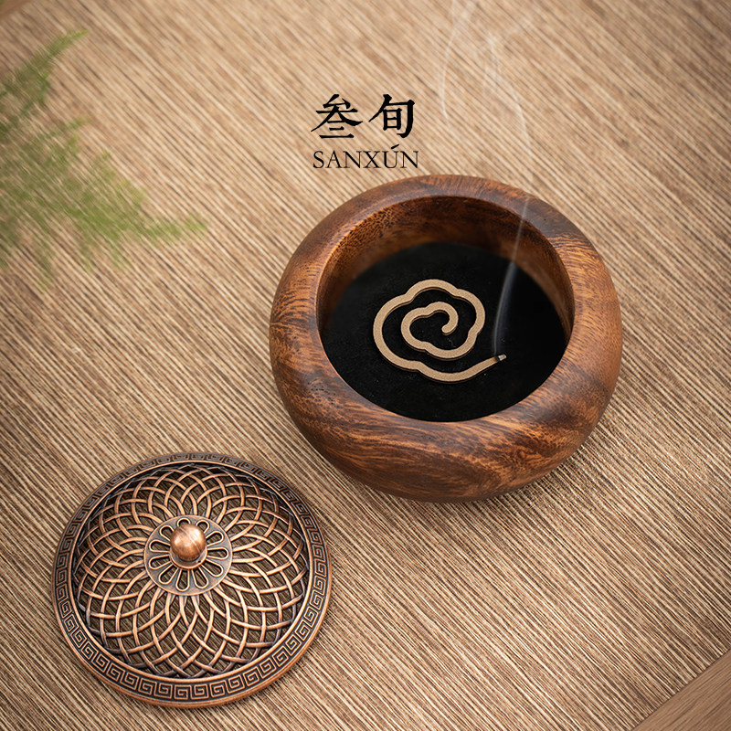 📚 叁旬禅境胡桃木香炉家用室内香熏炉盘香檀香炉香篆炉茶道创意摆件