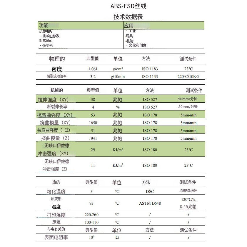 📚 银禧ABS防静电ABS-ESD 导电Conductive3D打印耗材FDM材料1.75mm