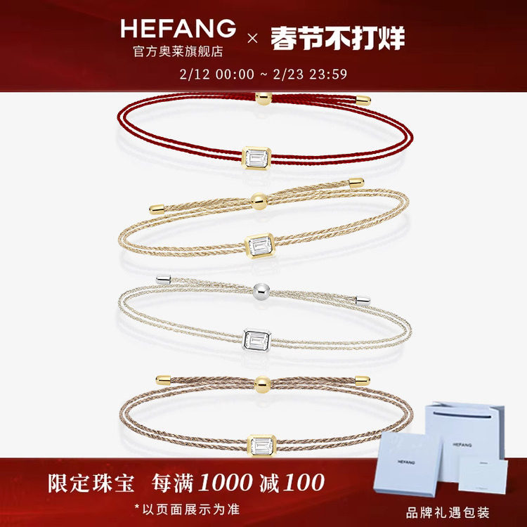 📚 HEFANG何方珠宝奥莱迷你方糖手链轻奢情侣手环美拉德手绳红绳
