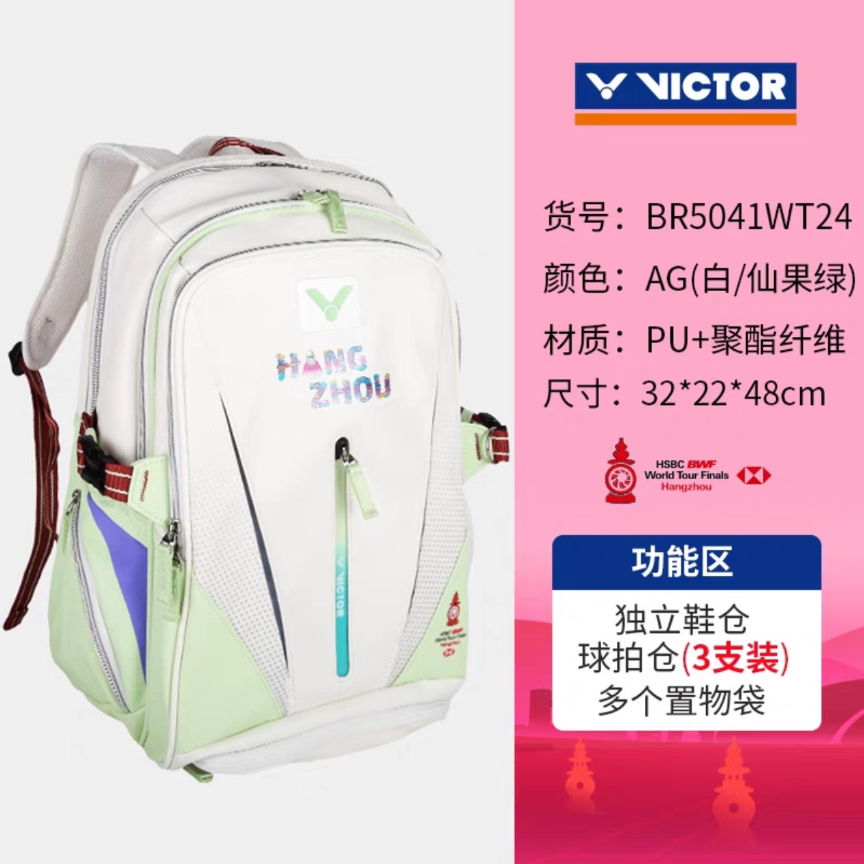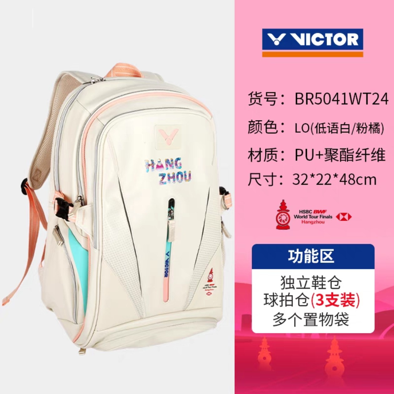 📚 中羽价VICTOR威克多羽毛球包BR5041WT24世界巡回赛总决赛双肩背包