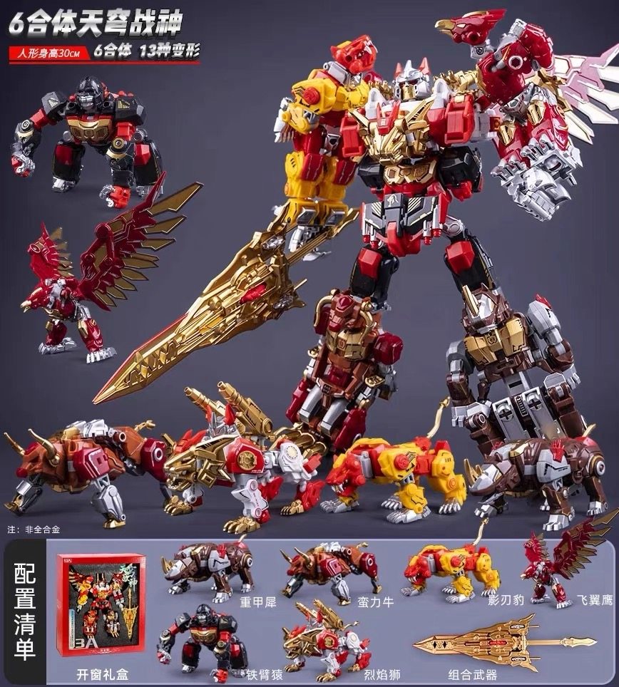 📚 粤星玩具天穹战神合金版野牛豹鹰猛虎六合体儿童变形机器人玩具