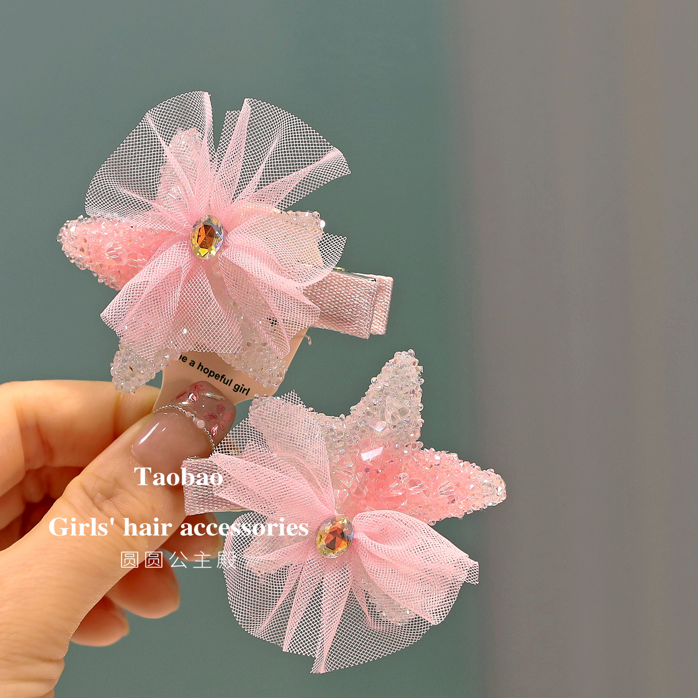 📚 手作串珠星星纱蝴蝶结宝宝小发圈扎辫子头绳砂糖五星边夹儿童发夹