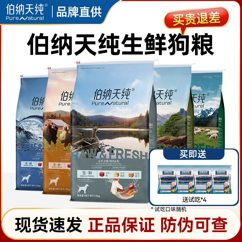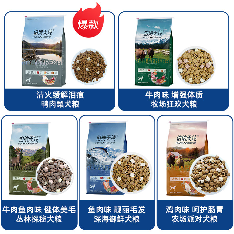 📚 伯纳天纯生鲜狗粮鸭肉梨成犬幼犬大型犬通用博纳天纯全价冻干犬粮