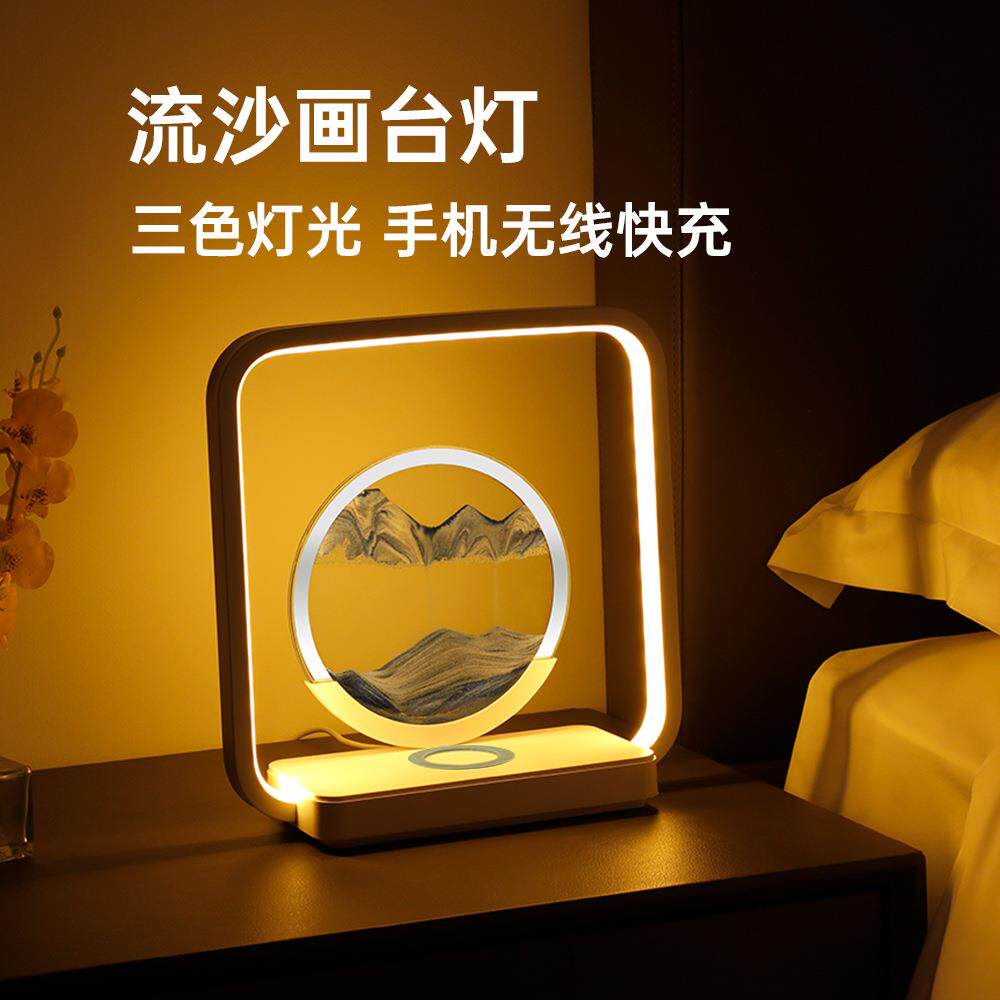📚 创意流沙画台灯无线充卧室床头灯客厅酒柜办公室桌面家