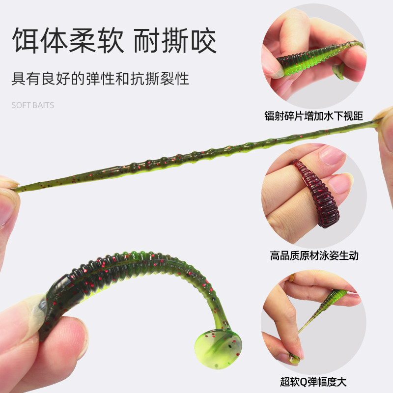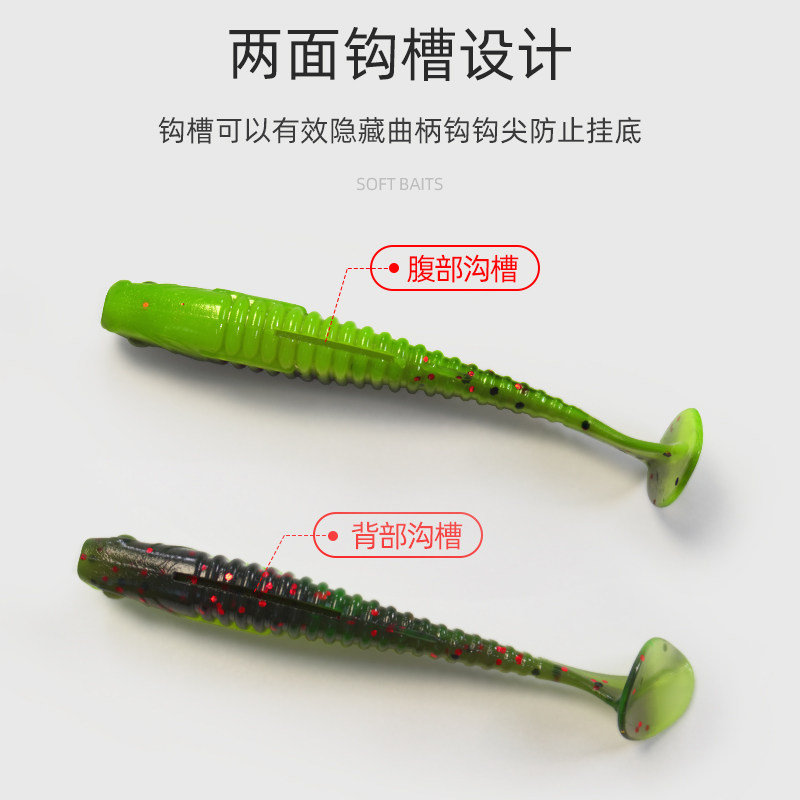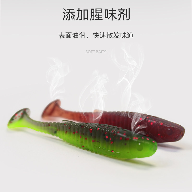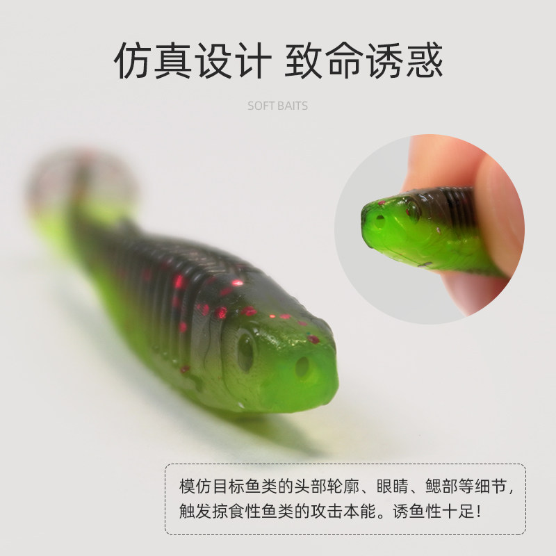 📚 路亚浮水T尾螺纹波动鱼软饵铅头钩根钓缓沉卷尾翘嘴鲈鱼鳜鱼软虫