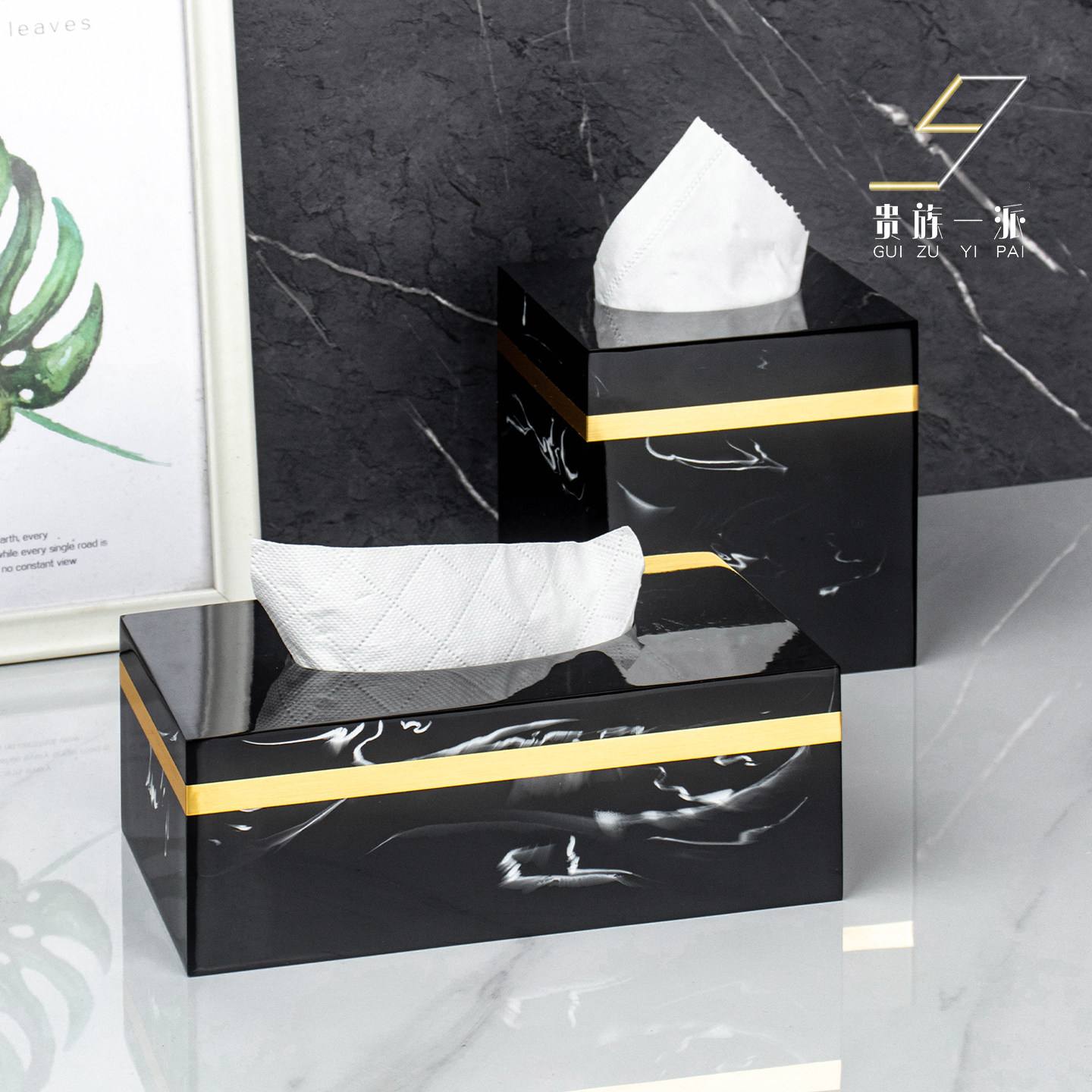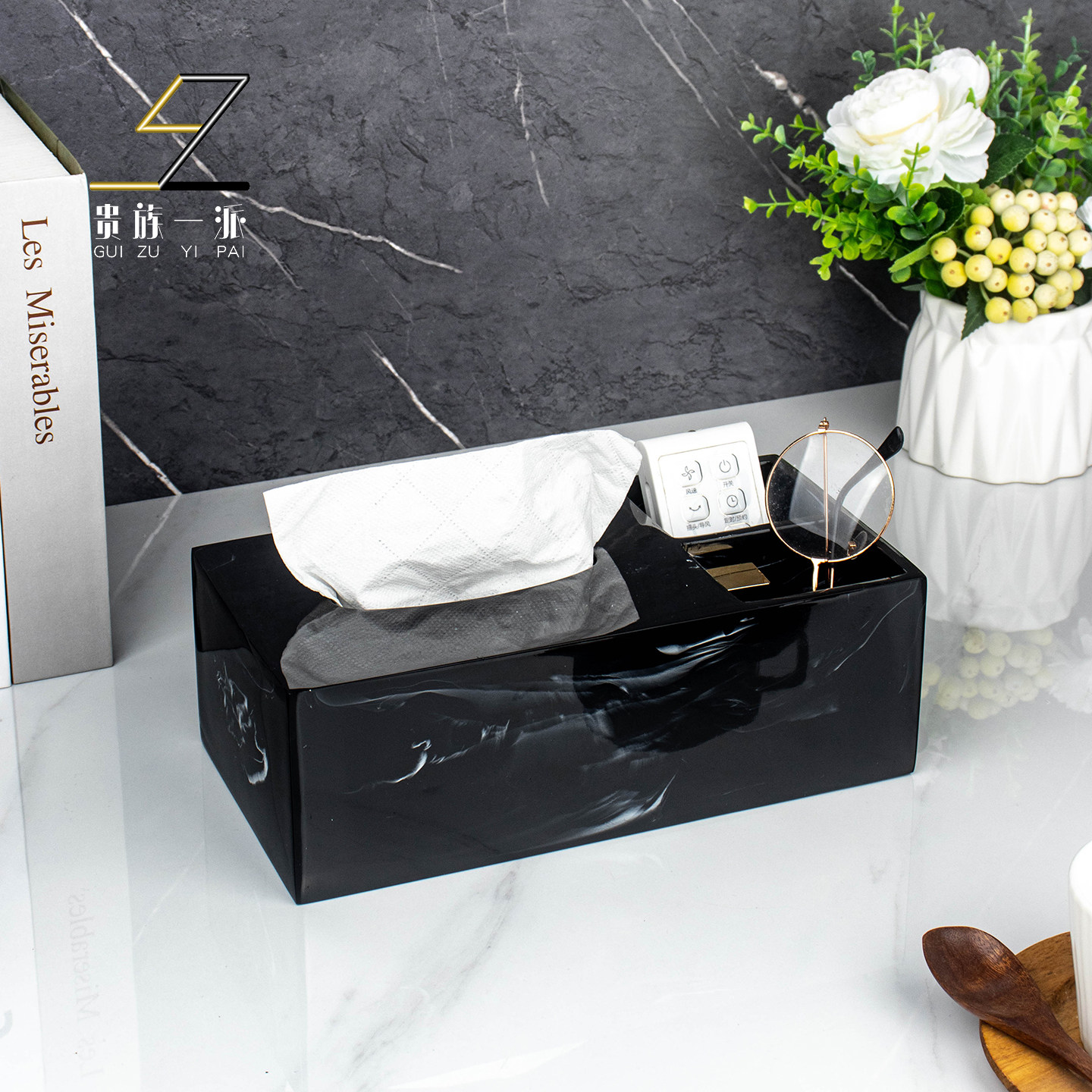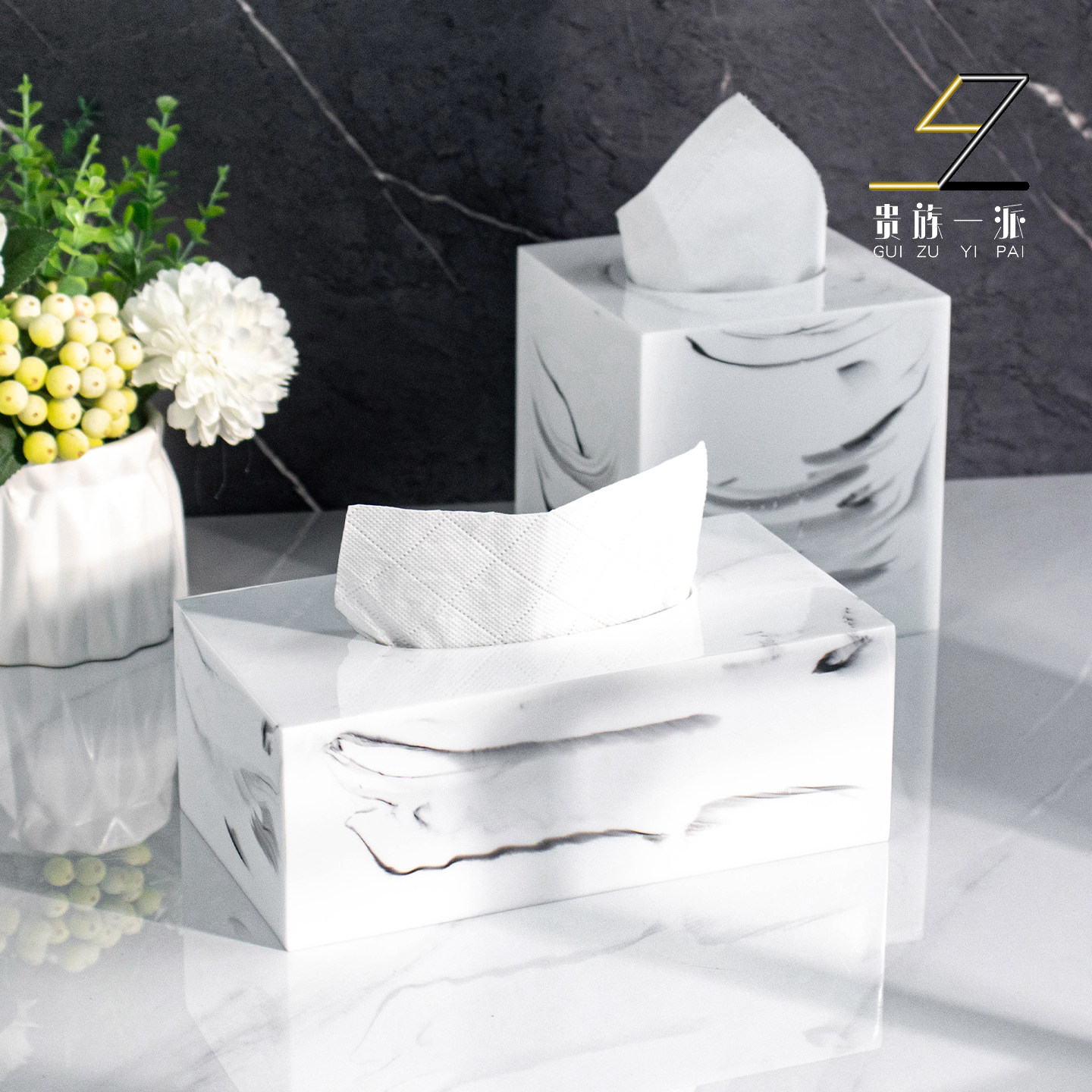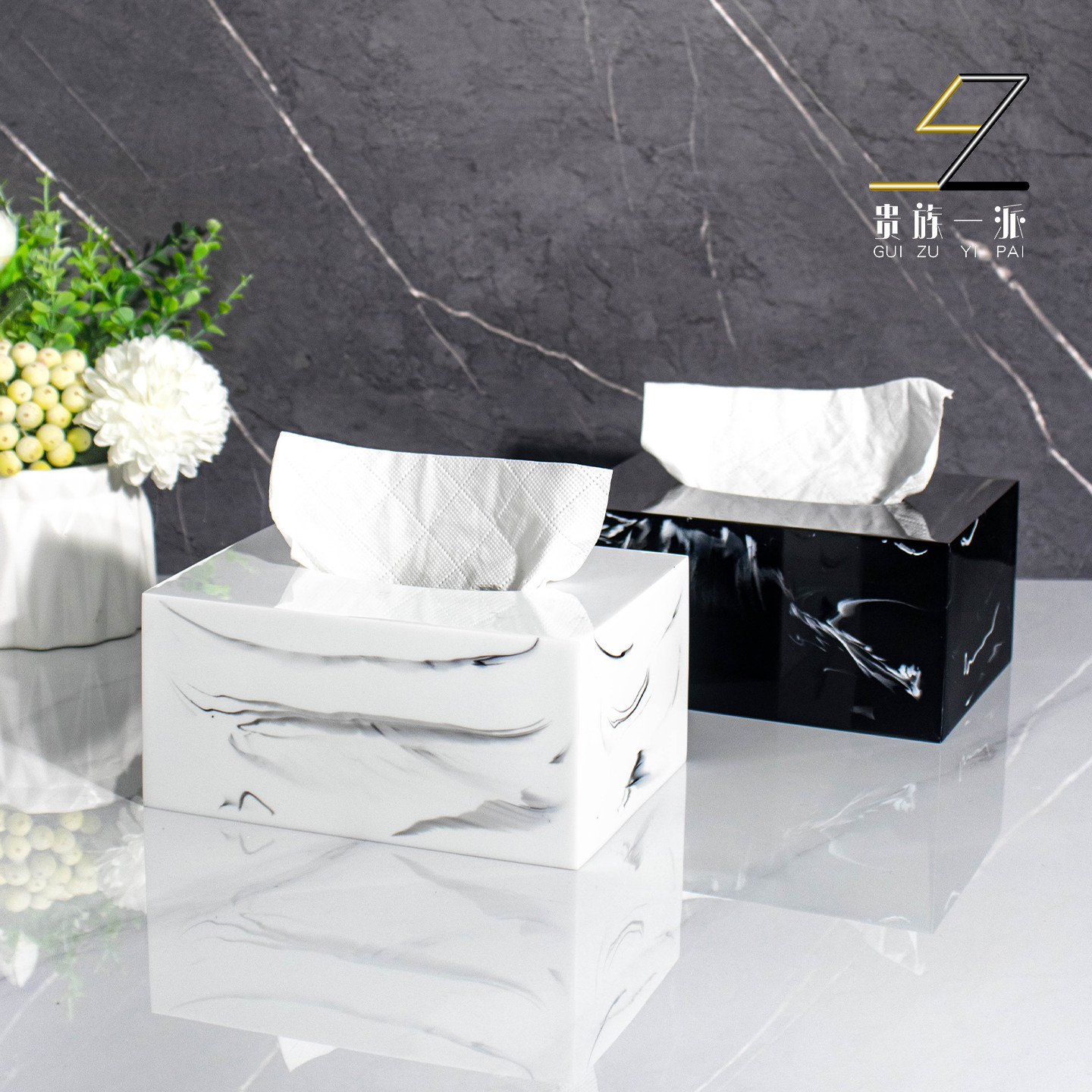 📚 高档酒店客厅创意纸巾盒大理石纹理高级感插手抽纸盒轻奢定制图案