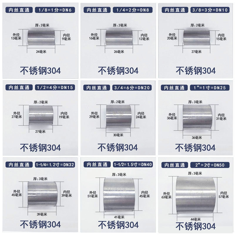 📚 304不锈钢4分内丝直接dn50接头6分dn25焊接直通2分内螺纹2寸对丝