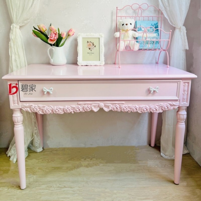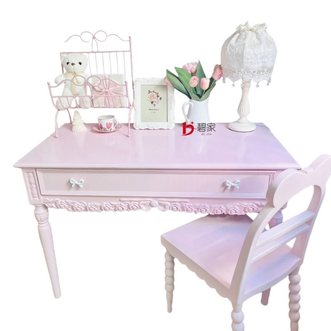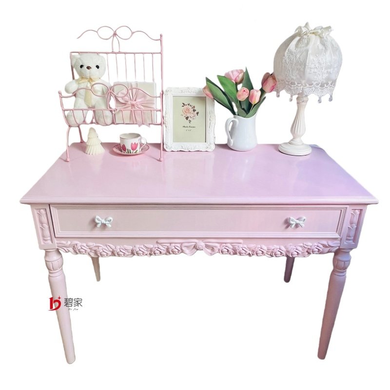 实木多巴胺写字台雕花法式